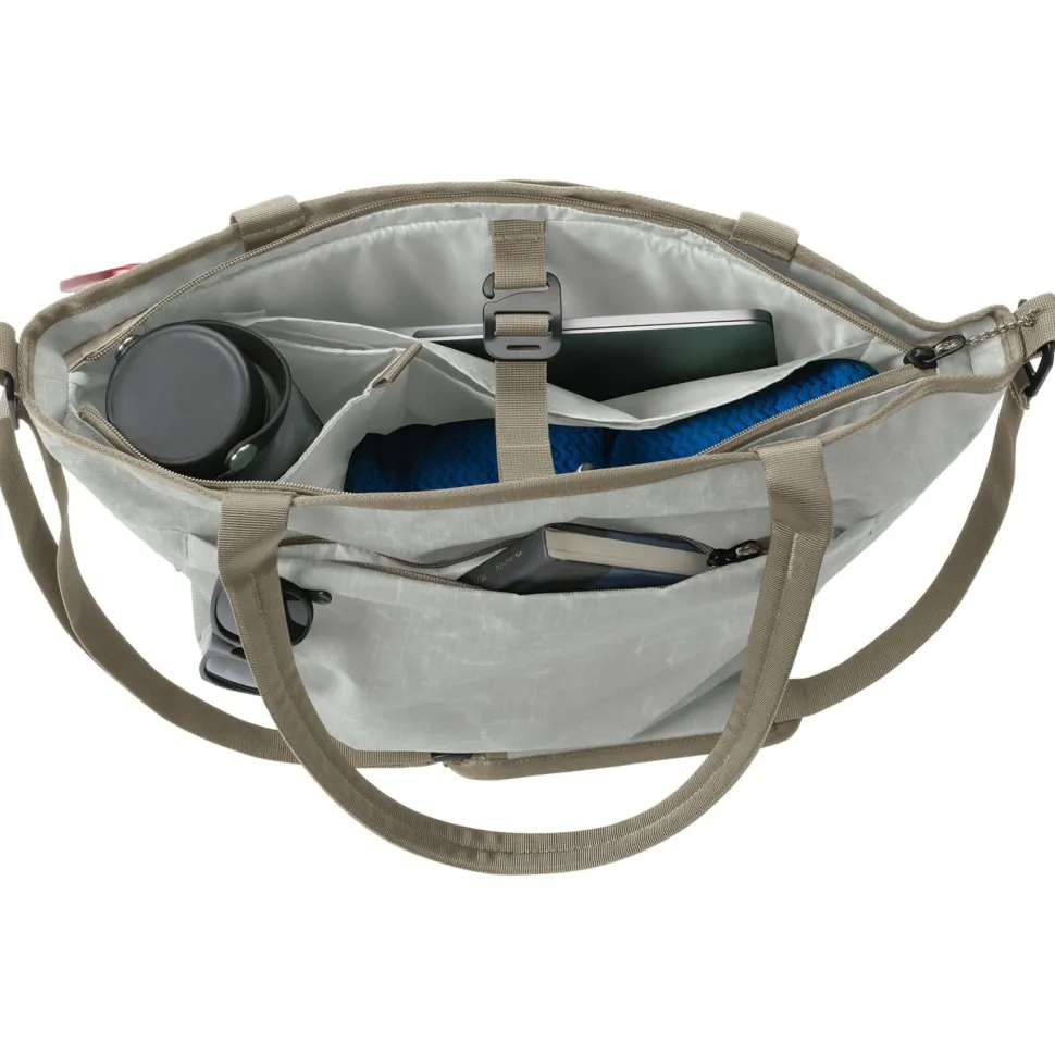 Gefertigt aus robustem Polyester mit einer Materialstärke von 450 Denier und einer schützenden Wachs-Imprägnierung, ist die Explore Tote 15 bestens gegen äußere Einflüsse gewappnet. Diese Eigenschaften verleihen der Tasche eine beeindruckende Langlebigkeit und Widerstandsfähigkeit, sodass Deine Sachen immer gut geschützt sind – selbst wenn das Wetter mal nicht mitspielt.