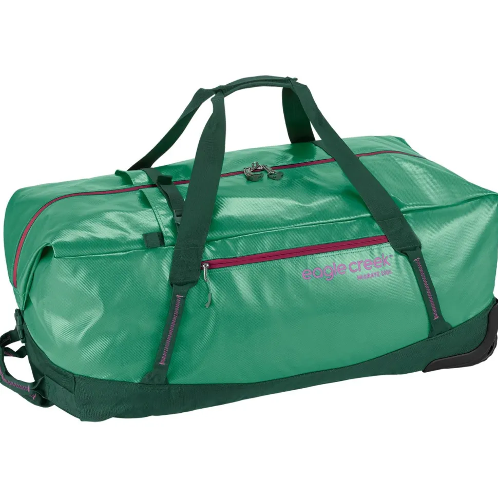 Die Migrate Wheeled Duffel 130 von eagle creek, ist eine Reisetasche mit der „No matter what warranty“. Durch spezielle Technologien ist die Tasche maximal wasserbeständig, abriebfest und vor eindringendem Staub geschützt. Eine spezielle Räderkonstriktion schont Deinen Rücken. Die vorhandenen Rucksackträger, lassen sich verstauen. Das Hauptfach ist durch eine sehr große Öffnung gut zugänglich. Die Fronttasche ermöglicht schnellen Zugriff auf das Wichtigste. Ein weiterer Pluspunkt ist die Verwendung von 100 % recyceltem Material. Die Migrate Wheeled Duffel 130 ist ein treuer Begleiter ein Leben lang.
