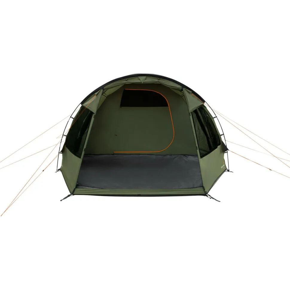 Das Innenzelt ist groß genug, dass fünf Personen bequem liegen können. Mehrere Taschen bieten hier außerdem Platz für diverse Kleinteile. Zusätzlich ist das Innenzelt abgedunkelt, was vor allem dann praktisch ist, wenn Du morgens ausschlafen willst oder die Kinder bereits ins Bett gehen, wenn es draußen noch nicht dunkel ist. Das Vorzelt ist da schon deutlich heller und kann somit nicht nur als Stauraum für Gepäck und Utensilien, sondern auch als Wohnbereich genutzt werden. Somit dient das Zelt auch als Aufenthaltsraum an Tagen mit Niederschlag.