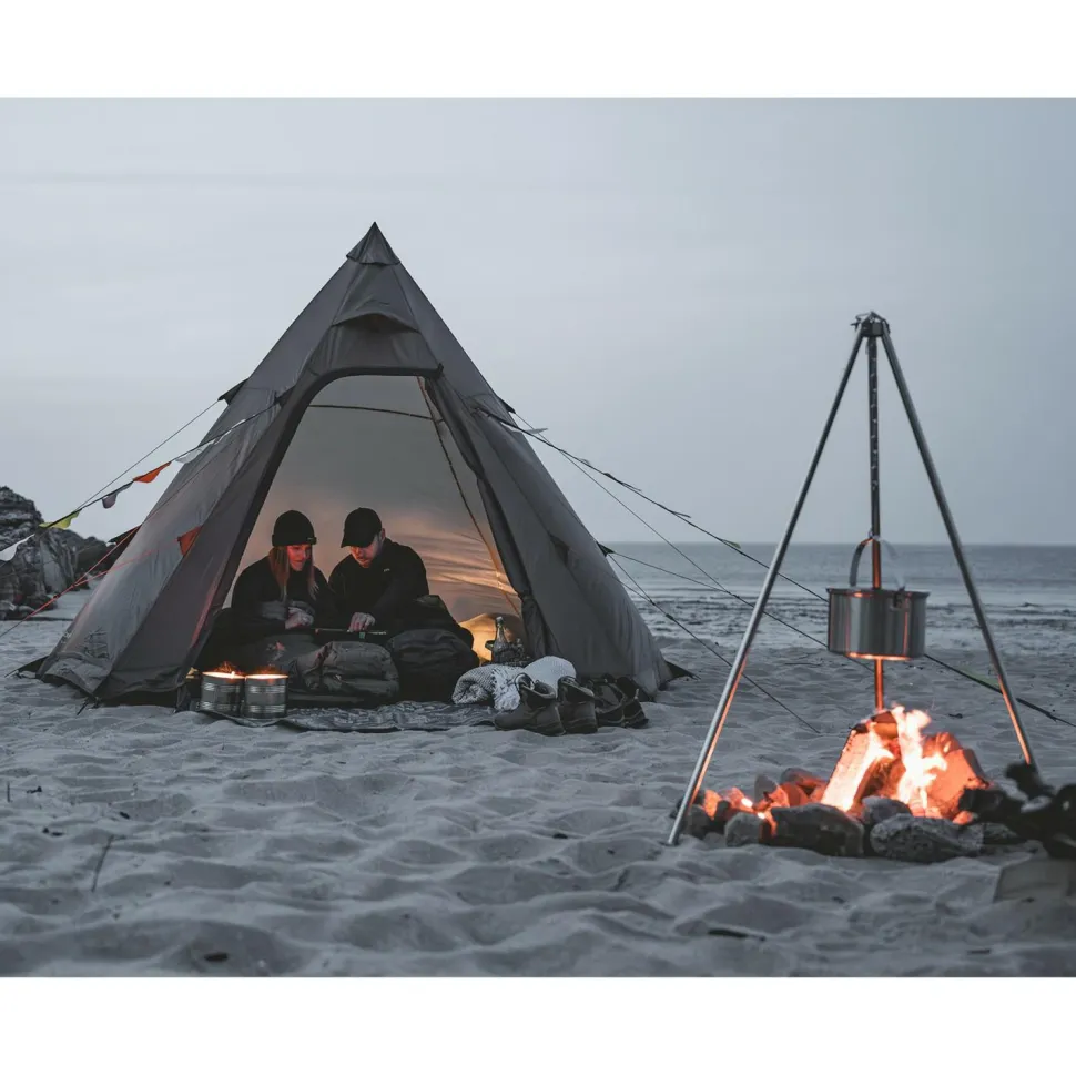 Aber auch auf praktische und schicke Details musst Du beim Otra Tipi nicht verzichten. Hierzu gehören beispielsweise mehrere Lüftungsöffnungen, die für eine optimierte Luftzirkulation im Zelt ermöglichen. Die vorderen Abspannleinen des Zelts sind mit kleinen Fähnchen ausgestattet. Das sieht nicht nur gut aus, sondern sorgt auch für eine bessere Sichtbarkeit der Schnüre.