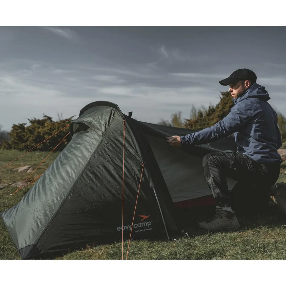 Mit dem Sarek 2 von Easy Camp erhältst Du ein kompaktes 2-Personen-Zelt, das sich bestens für Radreisen und Trekkingtouren eignet. Das geringe Gewicht und das schlanke Packmaß machen’s möglich. Aufgebaut bietet das Zelt ausreichen Platz für zwei Personen nebst Gepäck.