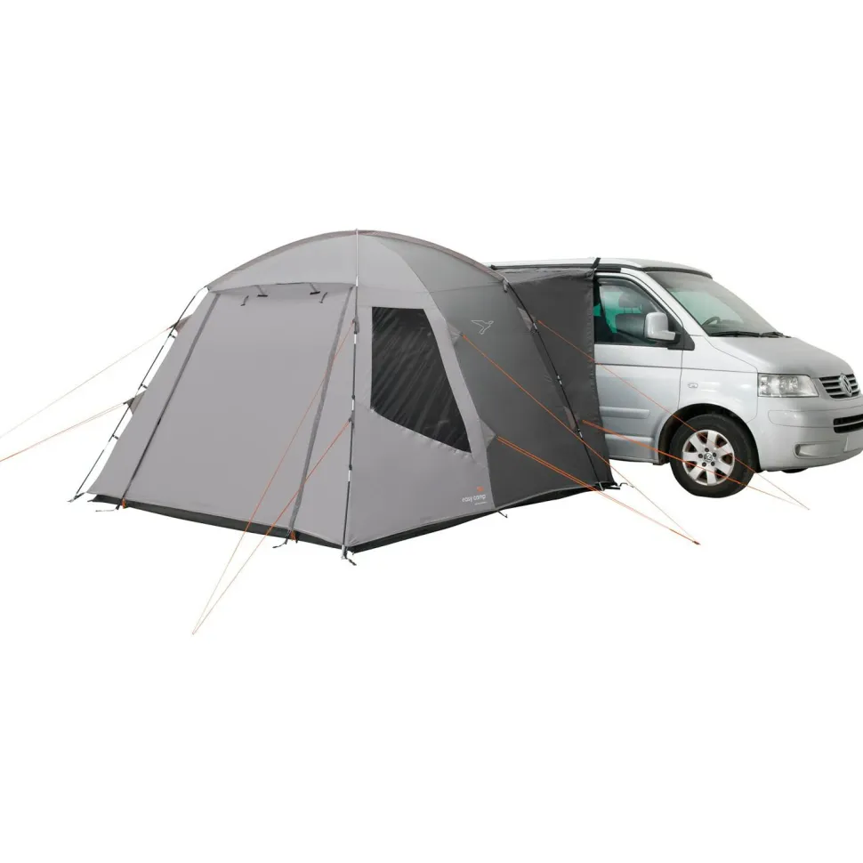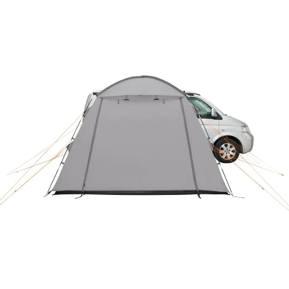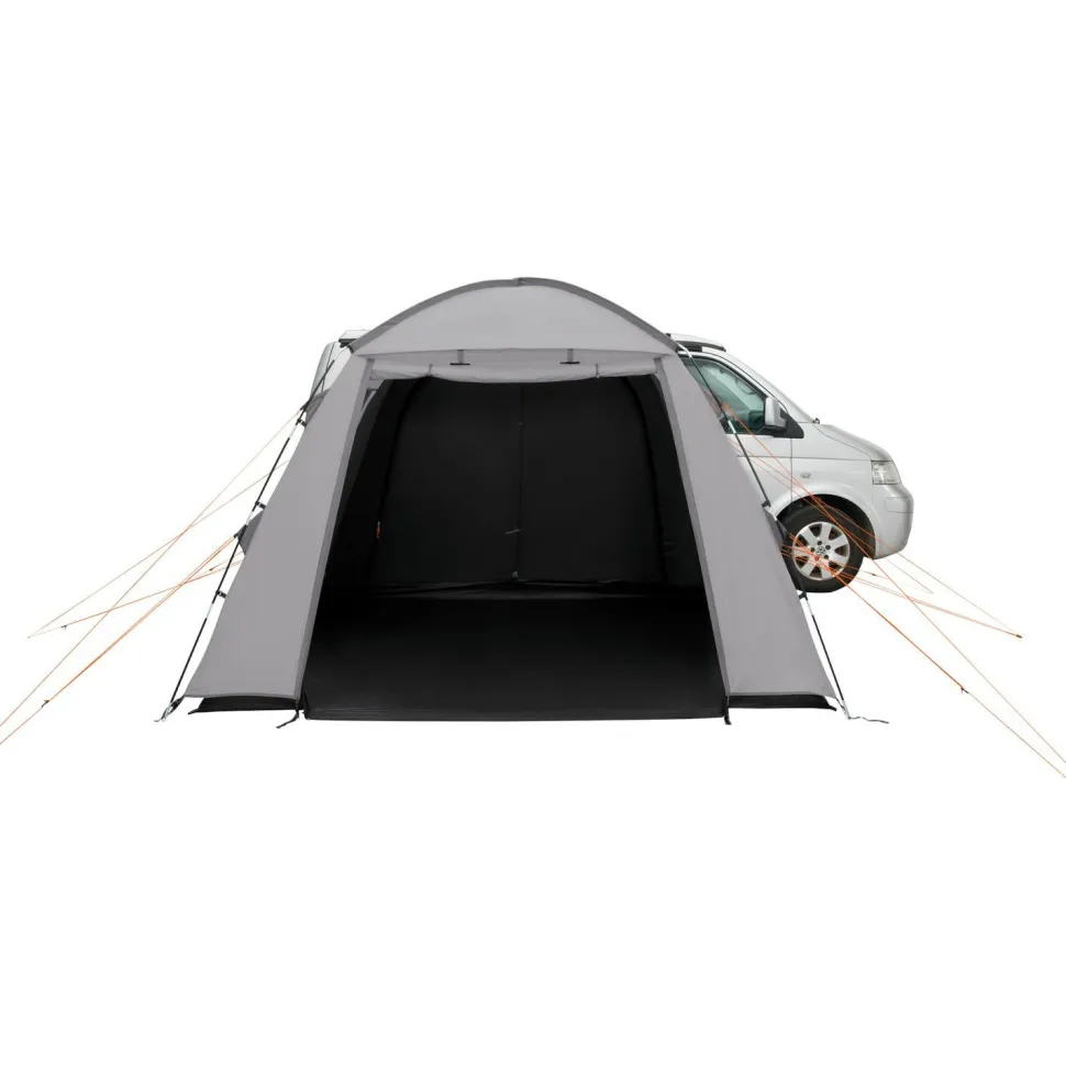 Wenn Du beim Camping zusätzlichen Platz brauchst, dann ist das Utne von Easy Camp was für Dich. Dieses Busvorzelt erweitert Deinen Wohnbereich erheblich und lässt sich schnell und einfach mit dem Camper koppeln. Das Zelt ist durch seine Konstruktion als Kuppelzelt absolut freistehend. Hierdurch lässt es sich notfalls auch ohne weitere Verankerung im Boden aufstellen. Ordentlich verankert steht es aber auch ohne Verbindung zum Fahrzeug sicher. Du bleibst somit mobil und kannst das Zelt bei Tagesausflügen oder dergleichen bequem auf dem Campingplatz stehen lassen.