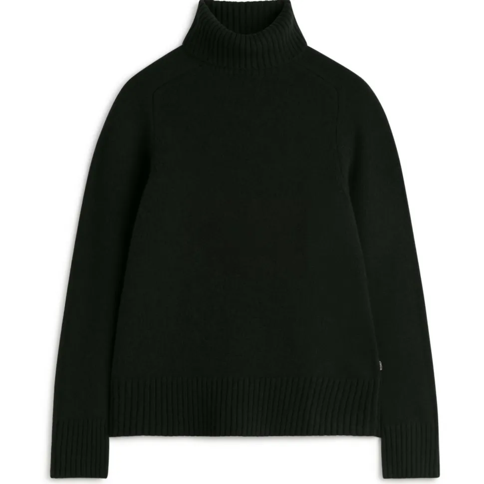 Der Rollkragen und die Rippbündchen an Saum und Ärmeln liegen schön eng an und verhindern, dass dort wertvolle Körperwärme entweichen kann. Und das beste – der Women’s Caqui Knit Wollpullover wurde zu 100 % aus recycelter Wolle hergestellt. Mit dem Kauf verhinderst Du, dass neues tierisches Material verwendet wird!