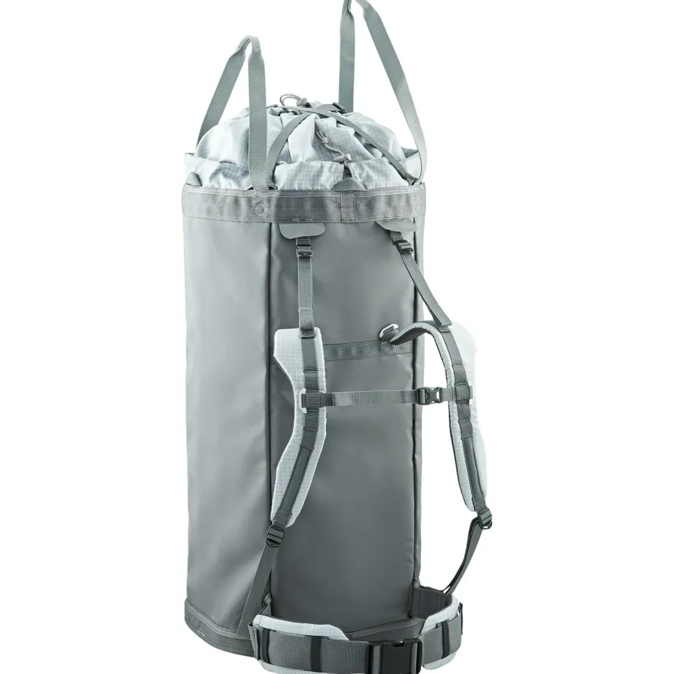 Der Lynn Haulbag 95 von Edelrid ist ein großer, strapazierfähiger Haulbag und Materialrucksack mit einem Volumen von 95 Litern. Ein formgebender fester Schaum vereinfacht den Zugriff und das Befüllen und verhindert zudem das Durchstechen von Material und damit Beschädigungen beim Transport und beim Haulen. Der Schaum wird durch Klett in Position gehalten und ist herausnehmbar, lässt sich also auch als Sitzunterlage oder Matte zum sauberen Ablegen und Sortieren des Materials nutzen. Das ergonomisch geformte und gut gepolsterte Tragesystem bietet hohen Tragekomfort und lässt sich individuell anpassen, um das Gewicht ideal zu verteilen. Auch voll beladen lässt sich das Tragesystem schnell und vollständig demontieren und verstauen, was das Haulen vereinfacht. Die unterschiedlich langen Haulschlaufen ermöglichen zudem das einfache Aushängen einer Seite.