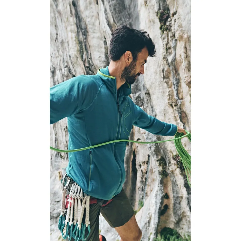 Die Nest Jacket von Edelrid ist der optimale Begleiter im Alltag und bei Deinen Outdoor-Abenteuern.Du kannst sie sowohl einzeln als Übergangsjacke, als auch als Midlayer unter Deine wasserdichte Regenjacke ziehen.Das leichte, schnelltrocknende Fleece-Material sorgt für eine angenehme Wärme bei guter Atmungsaktivität.Der hohe Kragen und die enganliegende Kapuze schützen Deinen Hals, Nacken und Kopf vor kühlen Temperaturen.Durch den Elasthan-Anteil und die Stretch-Bündchen an den Ärmeln und am Saum schränkt Dich die Nest Jacket nicht in Deinen Bewegungen ein.