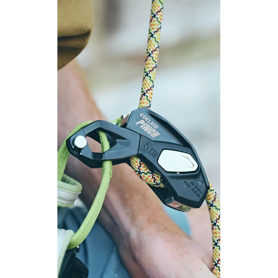 Bist Du bereit für eine Innovation am Fels? Das Edelrid Pinch sorgt für ein völlig neues Sicherungserlebnis – mit Blockierunterstützung für den Einsatz beim Sportklettern und in Mehrseillängen, ebenso als Abseilgerät in der Seilzugangstechnik!