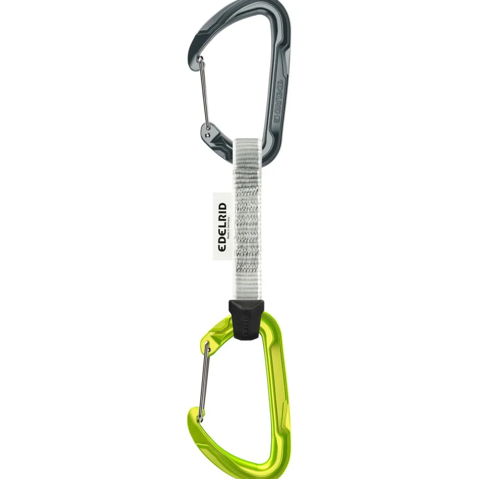 Das Pure Wire Set Express-Set ist mit 97 g pro Stück angenehm leicht. Es verfügt über eine 16 mm breite und 10 cm lange Schlinge aus Polyester, die am unteren Karabiner zusätzlich mit einer Antitwist Fixierung ausgestattet ist. Das sportliche Edelrid Express-Set wird in Deutschland gefertigt und überzeugt durch hervorragende Verarbeitungsqualität.