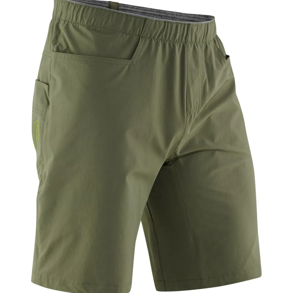 Die Radar Shorts von Edelrid ist der optimale Begleiter für warme Sommertage am Fels oder in der Kletterhalle.Durch den Nylon-Elasthan-Mix verbindet sie Robustheit mit Bewegungsfreiheit. So musst Du Dir keine Gedanken machen, solltest Du einmal in engen Kaminen oder Rissen klettern, das hält die Radar Shorts gut aus.Gleichzeitig schränkt sie Dich nicht bei hohen Hooks oder weiten Ausspreizern ein.Der Hüftbund mit Gummizug ist flach und flexibel, sodass er optimal unter Deinen Klettergurt passt.Nichts wie rein in die Shorts und los an die Felsen!