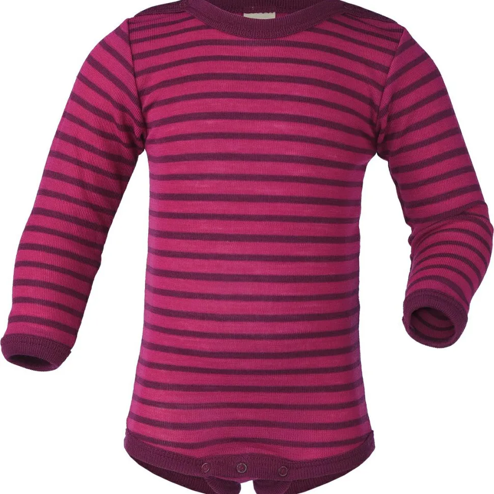 Super angenehm zu tragen und gibt darüber hinaus schön warm in den kalten Monaten: der Baby Body L/S mit Druckknöpfen geringelt von Engel! Das Kleidungsstück kommt in einer tollen Materialkombination aus Schurwolle und Seide. Dadurch trägt es sich super angenehm auf der Haut, wärmt, ist atmungsaktiv sowie geruchshemmend. Die Ringel-Optik sorgt darüber hinaus für den ein oder anderen Hingucker. Da fühlt sich der Nachwuchs super wohl!