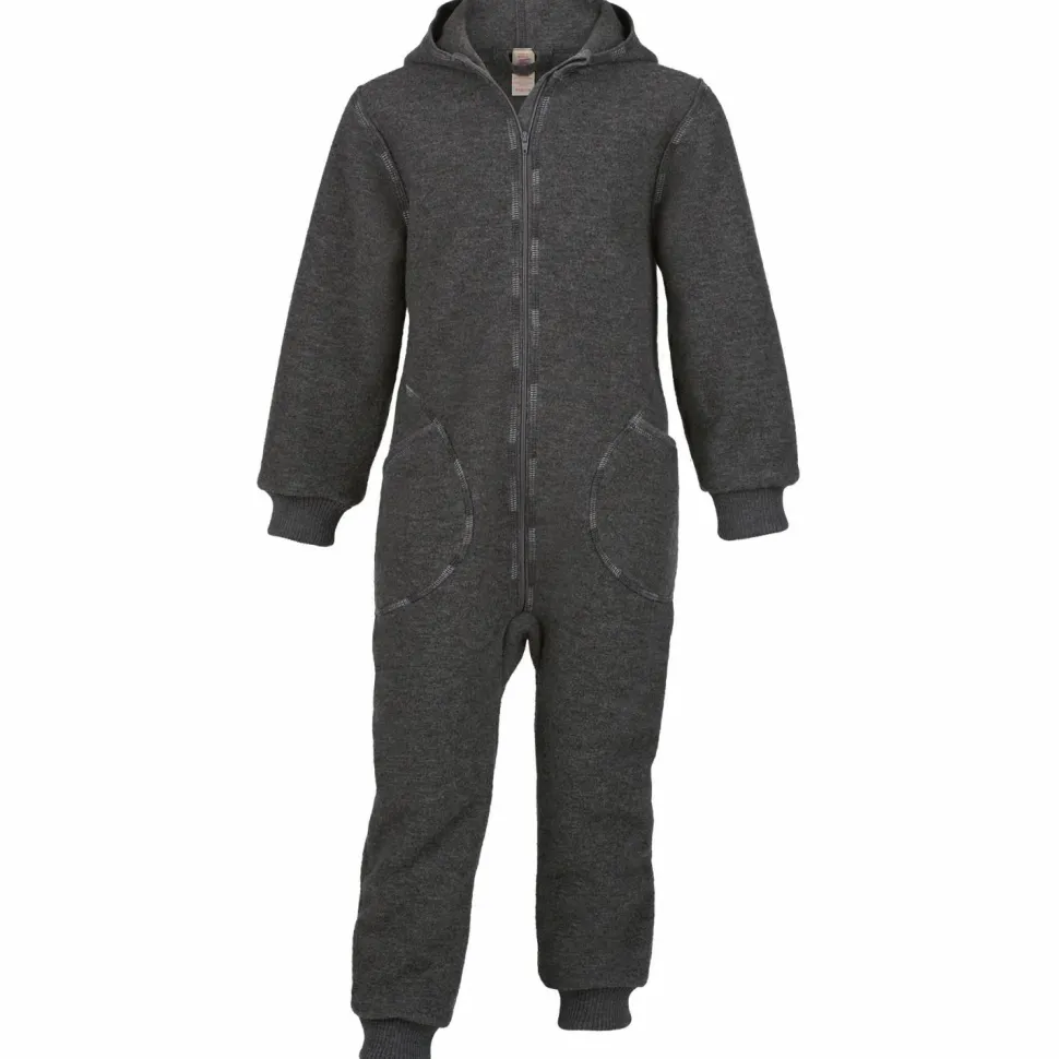Da der Overall aus gewalkter Bio-Wolle gefertigt ist, bietet er Schutz vor Nässe und Kälte. Außerdem bringt Wolle viele positive Eigenschaften mit sich. Sie ist temperaturregulierend, atmungsaktiv, geruchshemmend und gibt auch noch in feuchtem Zustand warm. Ausgestattet mit großer Kapuze bleiben Kopf und Nacken ebenfalls gut geschützt. Die Hände können in den zwei Fronttaschen aufgewärmt werden. Damit der Overall schnell an- und ausgezogen ist, gibt es vorne einen langen Reißverschluss. Für mehr Bewegungsfreiheit und Tragekomfort hat der Anzug einen Zwickeleinsatz im Schritt. Die elastischen Rippbündchen machen ihn noch bequemer und sorgen für eine ideale Passform.