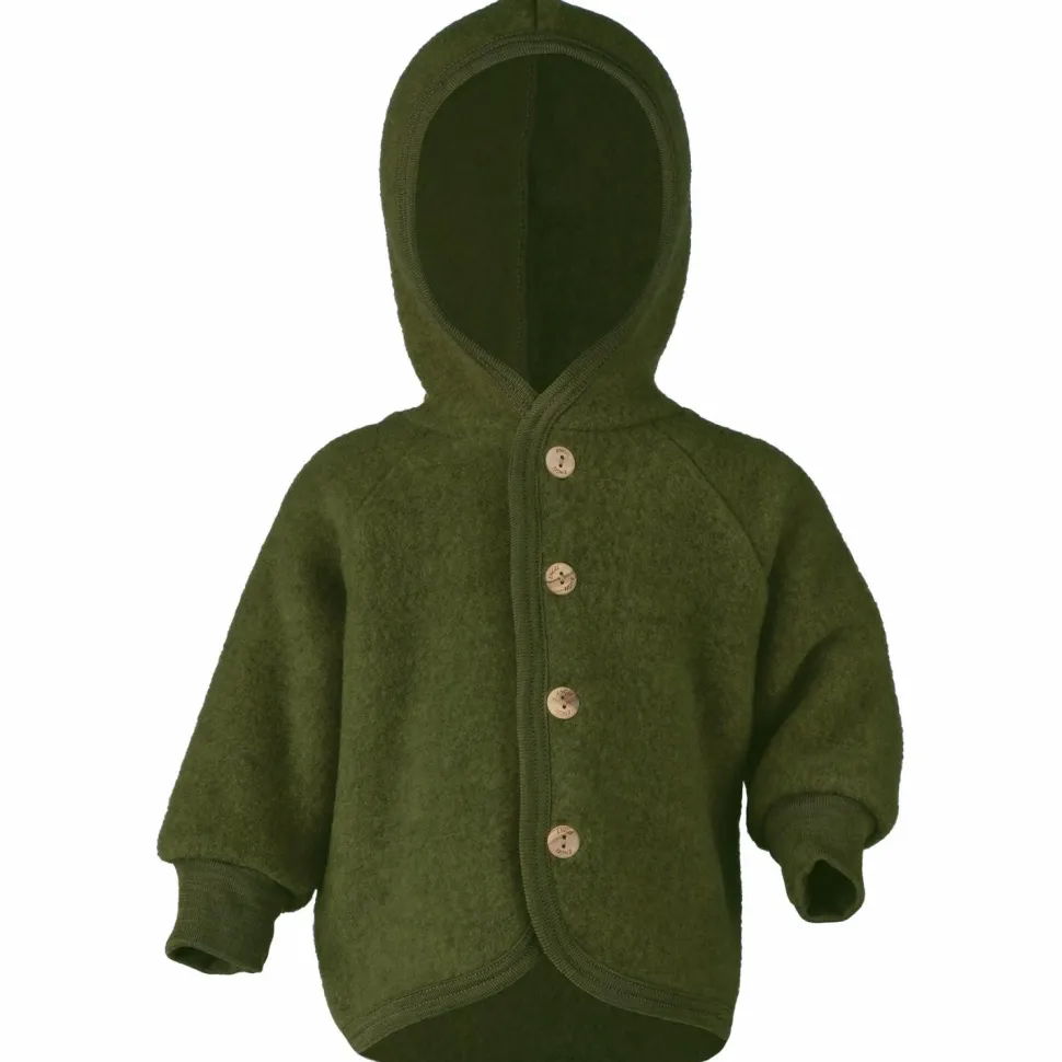 Natur pur: die Engel Kinder Kapuzenjacke mit Holzknöpfen! Die weiche Wollfleecejacke aus reiner Schurwolle ist ideal für kühle Tage. Das kratzfreie Material wärmt zuverlässig bei tiefen Temperaturen und sorgt dafür, dass es den Kids darunter nicht zu heiß wird! Dabei ist die Wolle super strapazierfähig – Schmutz lässt sich ganz einfach abbürsten. Die schönen Holzknöpfe und eine Kapuze machen das hübsche, kuschelige Design perfekt!