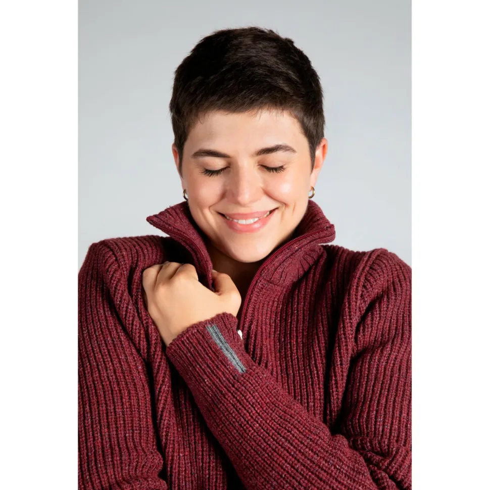 Die kratzfreie Wolle bietet temperaturregulierende Eigenschaften und ist angenehm antibakteriell. So genügt es, den Pullover auszulüften – ein Waschen nach jedem Tragen ist nicht nötig! Ein Anteil Seide macht den Pullover besonders strapazierfähig. Im Perlfang-Muster gestrickt, ist der Women’s Troyer nicht nur flauschig warm sondern auch zeitlos schick. Made in Germany – rundum fair, sozial und ökologisch verträglich hergestellt!