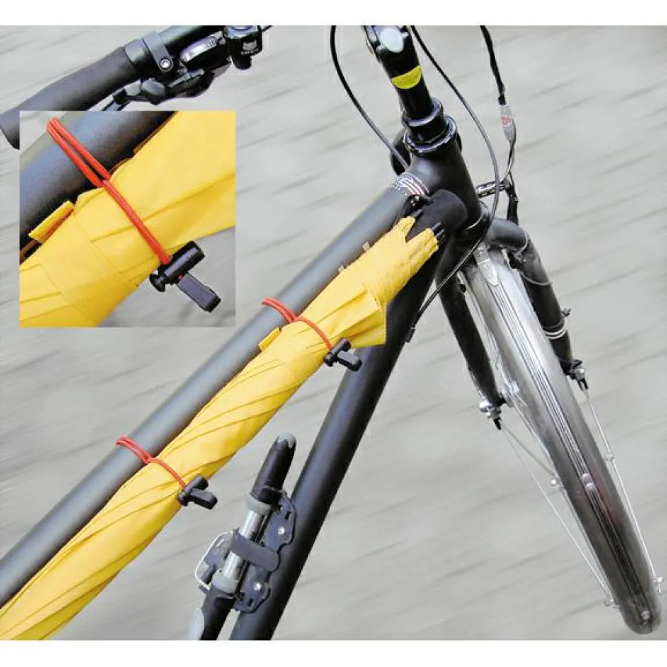 Leicht, elastisch und wetterfest – mit dem Holder-Set kann der Regenschirm bei vollem Rucksack mit auf Tour!