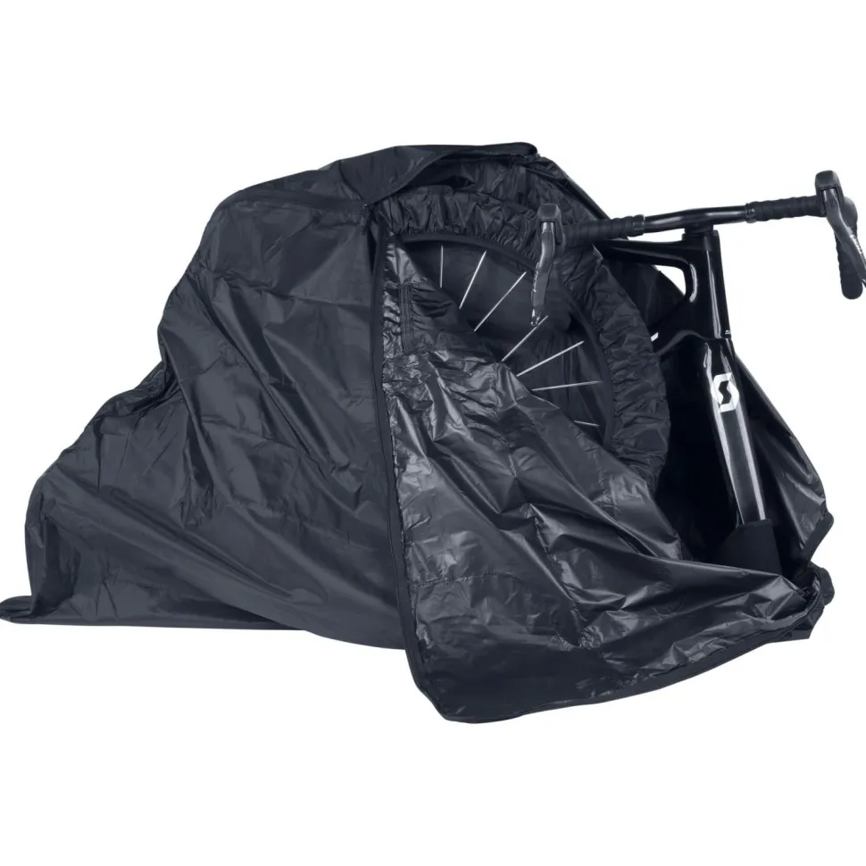 Das Bike Cover Road von Evoc ist eine ungepolsterte Tasche, die speziell für den Transport Deines Renn- oder Gravelbikes in öffentlichen Verkehrsmitteln entwickelt wurde. Wenn vollständiger Fahrradtransport nicht erlaubt ist oder keine Tickets verfügbar sind, kannst Du Dein Rad nach dem Ausbau des Vorderrads sicher verstauen. So gilt es als Gepäck und erleichtert Dir die Mitnahme im Zug.