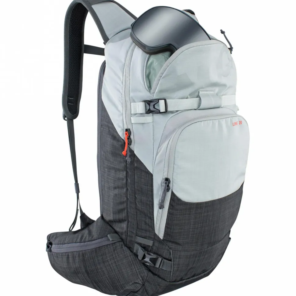 Der Line 20 von Evoc ist ein echter Allrounder für den Wintersport und mach auch abseits der Piste eine gute Figur. Dank der breiten Hüftflossen schmiegt er sich perfekt an den Körper an und sorgt für einen optimalen Halt. Der gepolsterte Rücken sorgt zudem für viel Komfort und eine gute Belüftung.