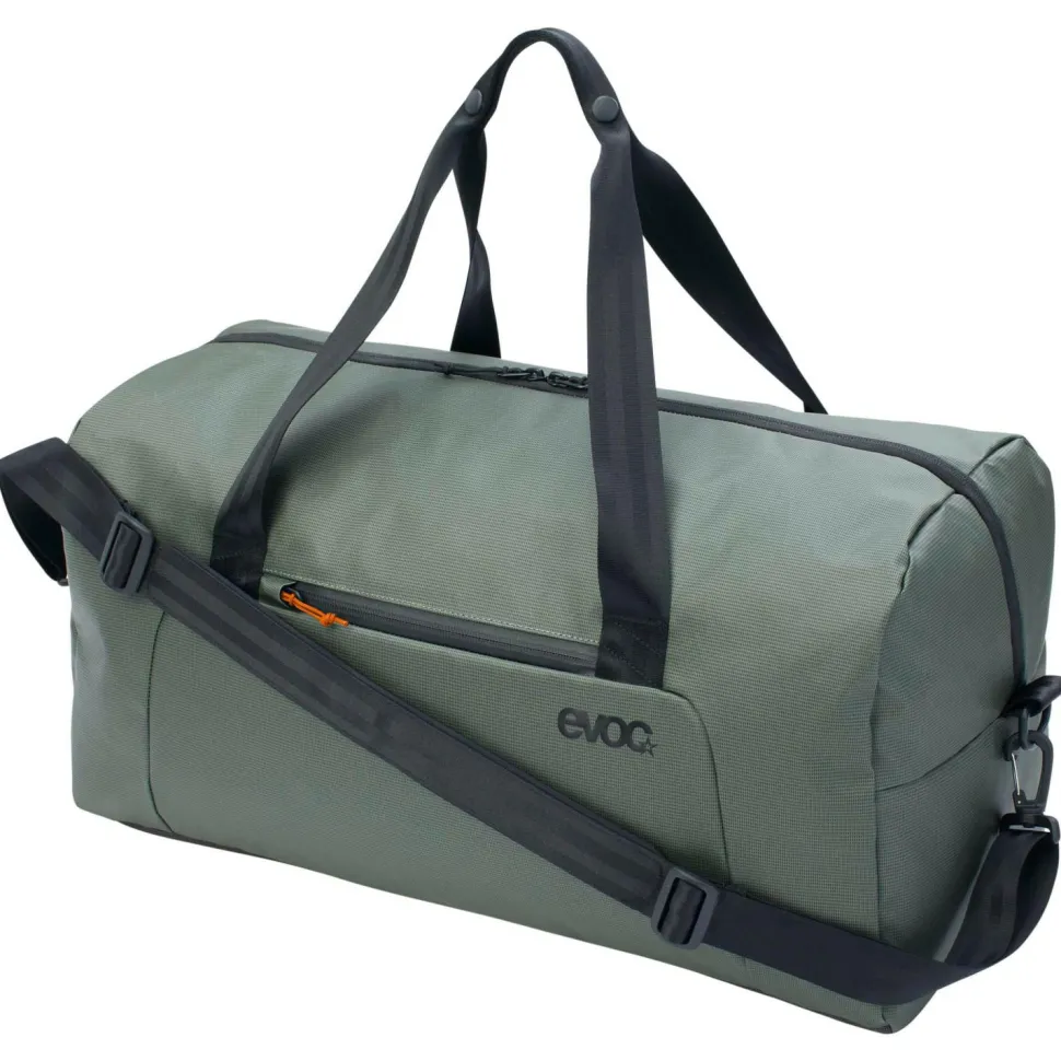 Mit der aufgeräumt-ästhetischen Erscheinung, und zahlreichen praktischen Features ist die Weekender 40-Reisetasche der Rucksack- und Protektoren-Spezialisten von Evoc die ideale Begleitung; egal, ob es nur ins Fitnessstudio, über das sprichwörtliche Wochenende -oder auch wochenlang- auf Reisen geht! Das PVC- und PFC-freie, TPU-beschichtete Außenmaterial ist wasser- und schmutzabweisend. Neben dem geräumigen Hauptfach bietet die Tasche zwei kleine extra Fächer innen, sowie zwei jeweils mit Reißverschlüssen gesicherte Außentaschen für wichtige Dinge, die unterwegs griffbereit sein müssen, aber verlustsicher aufbewahrt werden sollen. Die Griffe sind extra strapazierfähig, und außerdem verfügt die Weekender 40 über einen abnehmbaren, gepolsterten Schulterriemen, der Dir den Transport erleichtert.