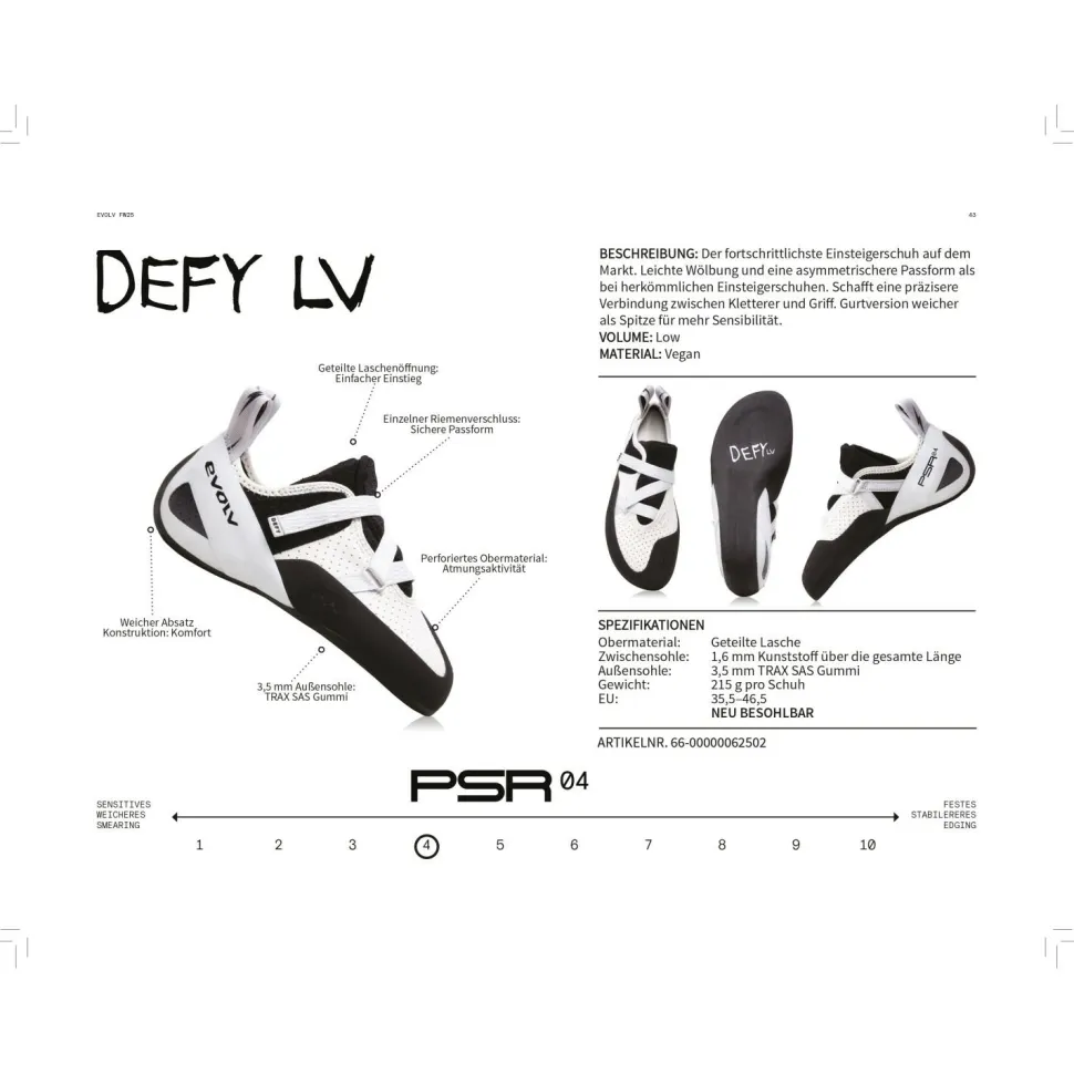 Der Defy LV verfügt über eine praktische geteilte Laschenöffnung, die das An- und Ausziehen erleichtert. Der Einzelriemen-Verschluss ist nicht nur sicher, sondern bietet auch einen komfortablen Sitz bei gleichzeitig hoher Sensitivität – perfekt für das feine Gespür beim Klettern. Außerdem sorgt die weiche Fersenkonstruktion für Komfort, sodass Du Dich ganz auf Deinen nächsten Zug konzentrieren kannst.
