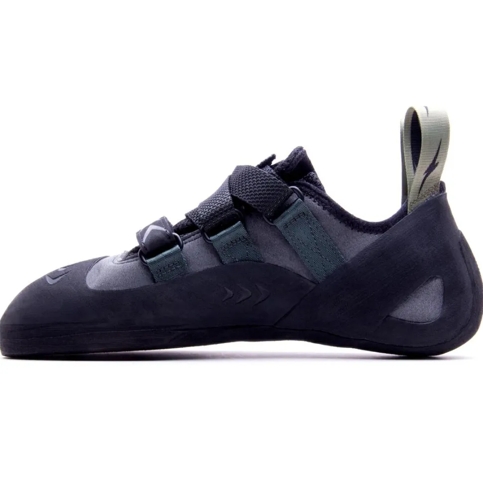 Das Obermaterial ist aus robustem Synthratek VX Material, das dem Fuß Stabilität und Flexibilität beim Klettern liefert. Der Klettverschluss gibt den Füßen den nötigen Halt im Schuh, damit man sich beim Klettern und Bouldern voll und ganz auf seine Route konzentrieren kann. Die Materialverstärkungen an der Ferse und im Zehenbereich bieten Abriebschutz rundum und machen die Kletterschuhe langlebiger. Mit der griffigen Außensohle meistert man jede Passage. Die zwei Schlaufen erleichtern das schnelle An- und Ausziehen der Kletterschuhe.