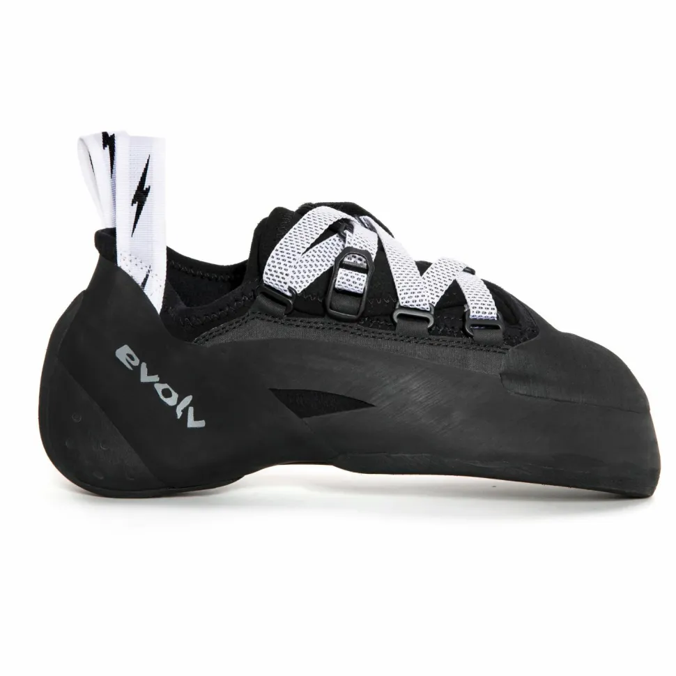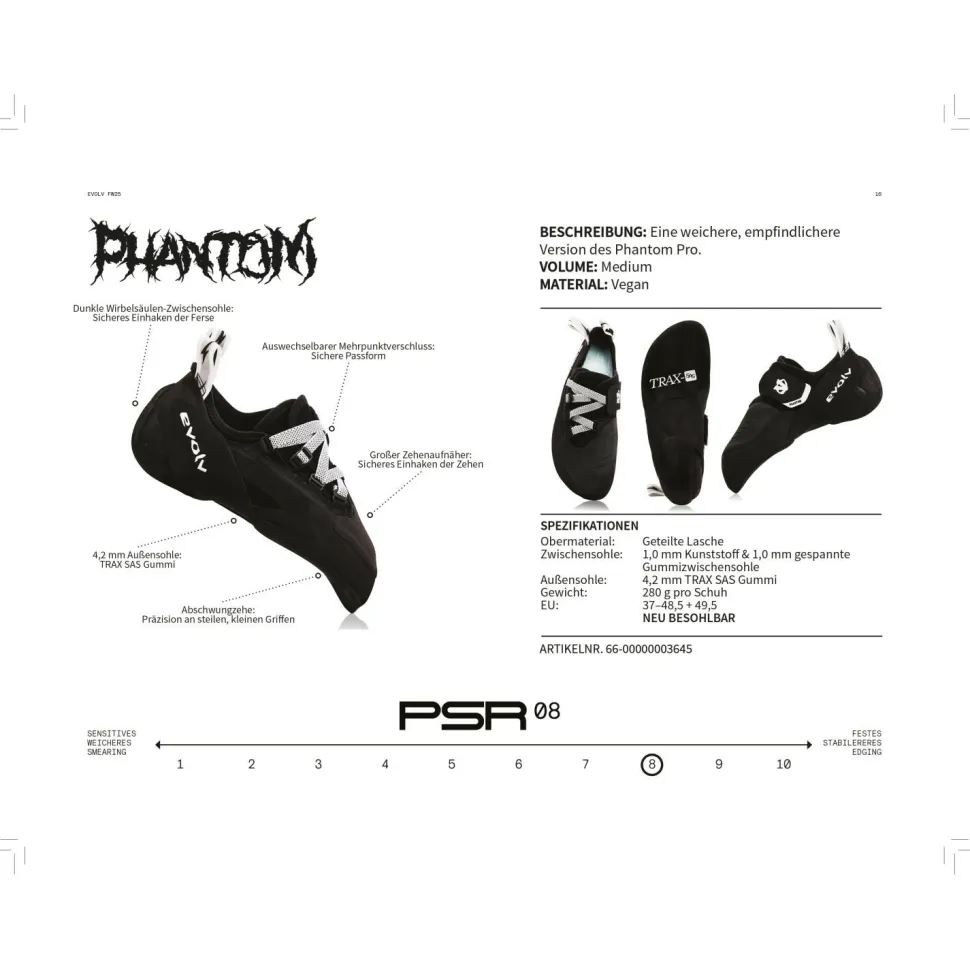 Wer beim Klettern so richtig was reißen will, braucht dazu gute Kletterschuhe. Wie gut nur, dass wir mit den Phantom von Evolv genau sowas im Programm haben. Diese Kletterschuhe bringen alles mit, was es für das Klettern in der Vertikalen und im Überhang braucht und sitzen obendrein wie eine Eins an den Füßen. Der Grund hierfür liegt vor allem in der aggressiven Form sowie dem synthetischen Obermaterial. Dieses schafft es sich perfekt an die jeweilige Fußform anzupassen ohne dabei die Form der Schuhe zu beeinflussen. Außerdem verfügen diese Schuhe über einen durchdachten Klettverschluss, der für zusätzlichen Halt sorgt. Somit sind sie der ideale Kompromiss zwischen Slippern und Schuhen mit mehreren Klettbändern. Durch die Anziehschlaufen wird darüber hinaus das Anziehen der sehr eng anliegenden Schuhe erheblich erleichtert.