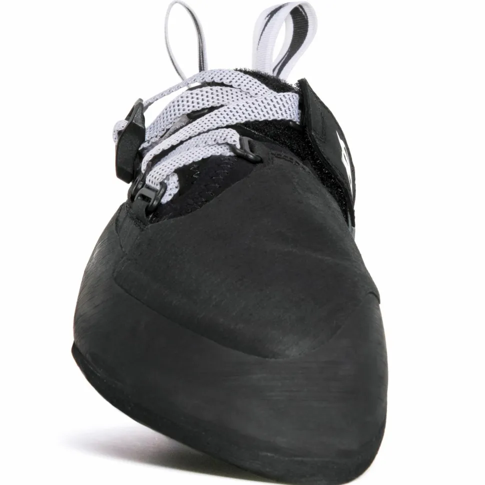 Die Sohle weißt einen aggressiven Downturn auf und ist gerade für das Stehen auf kleinen und kleinsten Tritten optimal geeignet. Außerdem wurden die Schuhe sowohl im Zehenbereich, als auch an der Fersen mit einer speziellen Gummierung versehen. Hierdurch ist das präzise Setzen von Toe- und Foothooks problemlos möglich. Wer es also am Fels und in der Halle nicht auf den Zufall ankommen lassen möchte, ist bei diesen Schuhen genau richtig.