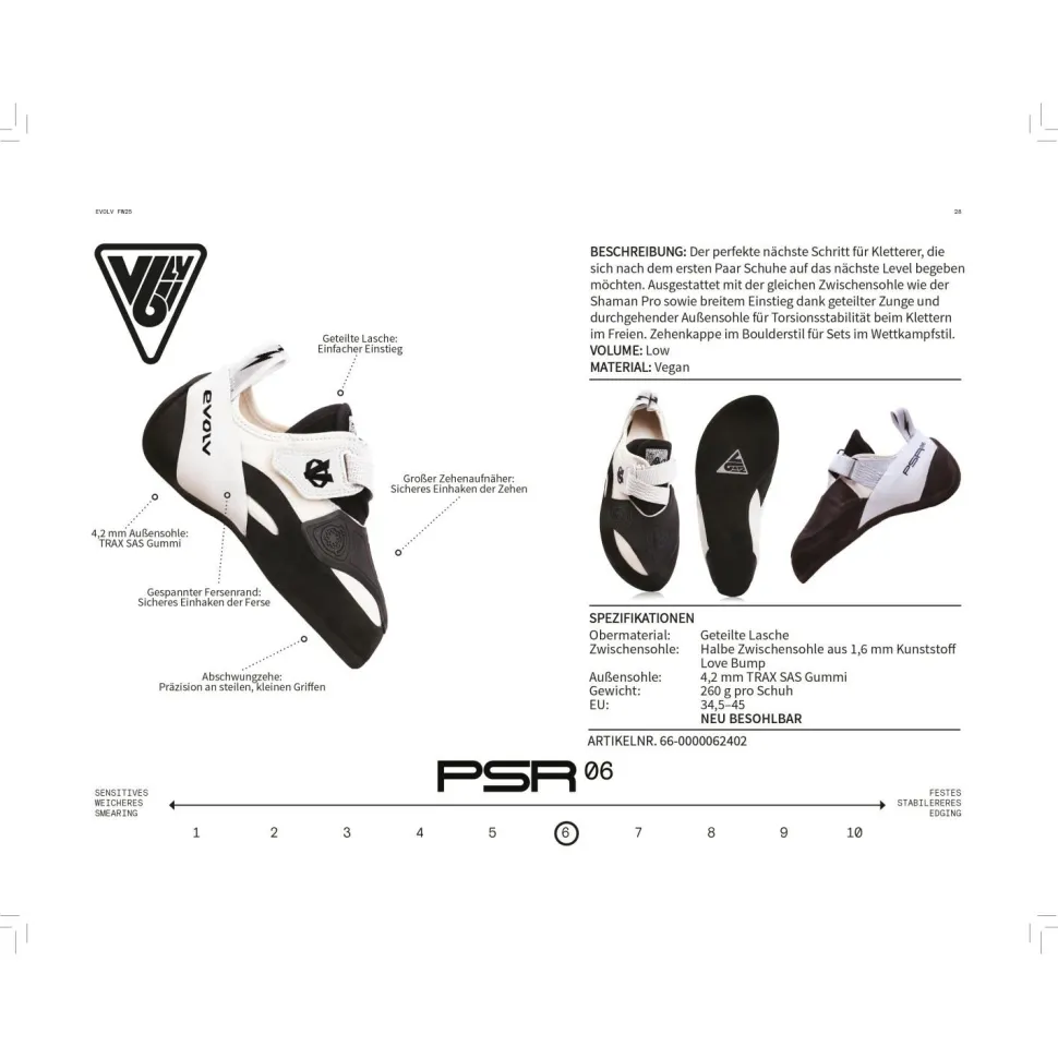 Die Women’s V6 LV (LV = Low Volume) von Evolv sind perfekt für alle, die möglichst vielseitige Boulderschuhe suchen, die gleichzeitig leistungsstark genug sind, um erste schwierige Projekte in Angriff zu nehmen. Die Schuhe haben eine schmale Passform und sind daher besonders für Füße mit geringem Volumen geeignet.