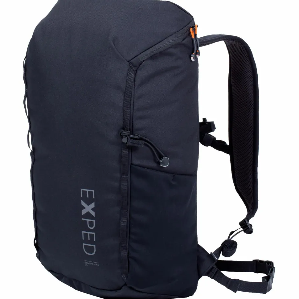 Mit seinen vielfältigen Befestigungsmöglichkeiten ist der Summit Hike 25 der ideale Begleiter auf dem Weg zum Gipfel. Dazu zählen zwei durchgehenden Daiyschains auf der Front, Stretch-Taschen für Trinkflaschen, ein Pickel- oder Stockschlaufe sowie eine inwändige Deckeltasche mit Schlüssel-Clip. Auch der Schulterträger verfügt über ein extra Fach, in dem Sonnenbrille oder Smartphone ihren Platz finden. Der Summit Hike 25 von Exped ist für den Einsatz von Trinksystemen vorbereitet und verfügt über eine integrierte Regenhülle.
