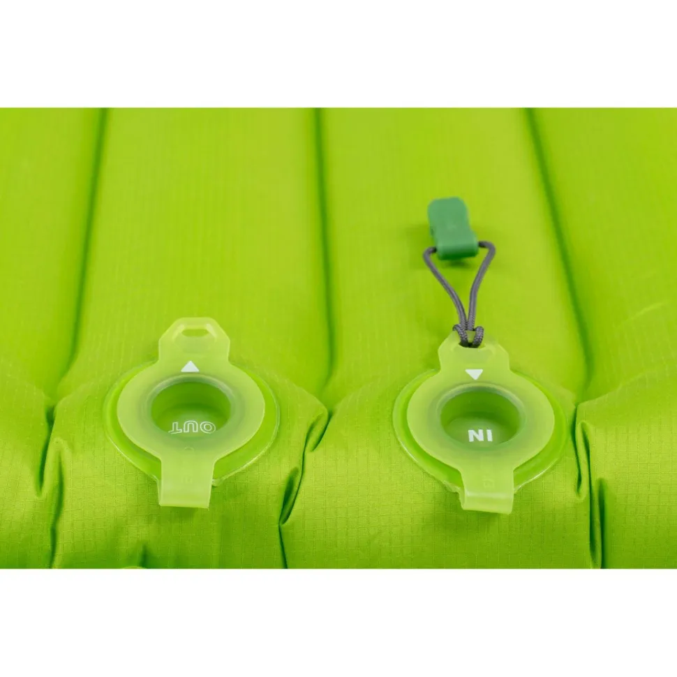 Exped stattet die Ultra 5R Isomatte mit dem leistungsfähigen und besonders gut haltbaren Flatvalve Ventil aus. In Kombination mit dem mitgelieferten Schnozzel Pumpbag wird die Matte zügig und mühelos aufgeblasen. Dafür ist weder Lungenkraft nötig, noch gelangt Feuchtigkeit über die Atemluft in die Matte.
