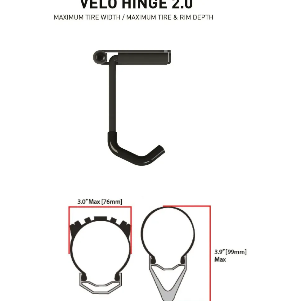 Der Fahrradhalter Velo Hinge 2.0 von Feedback Sports bietet mit seinem verstärkten, steiferen Körper und dem längeren Haken eine sichere Aufnahme moderner Bikes. Das schwenkbare Design erleichtert den Zugang zu benachbarten Rädern und sorgt für eine platzsparende Wandaufbewahrung. Bei Nichtgebrauch wird der Haken einfach ins Scharnier eingeklappt, sodass der Halter dezent und aufgeräumt an der Wand bleibt.