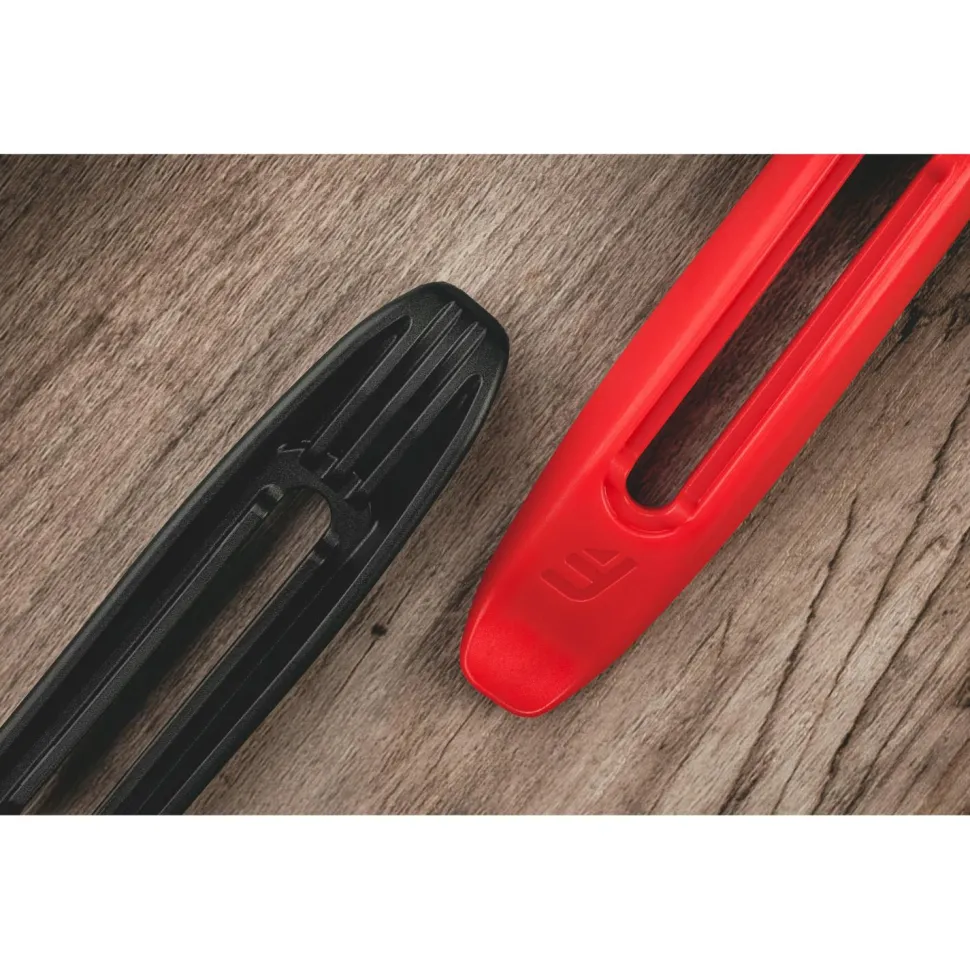 Die Reifenheber Biolever von Feedback Sports bestehen aus biobasiertem Nylon und kombinieren nachhaltiges Material mit durchdachtem Design. Das zusammensteckbare Paar ist kompakt zu transportieren, während die optimierte Hakengeometrie auch enge Reifenwülste sicher fasst. Ein verstärkter Wulsthaken erhöht die Haltbarkeit, der gebogene Griff verbessert die Hebelwirkung und Speichenschlitze halten die Heber beim Arbeiten zuverlässig in Position.
