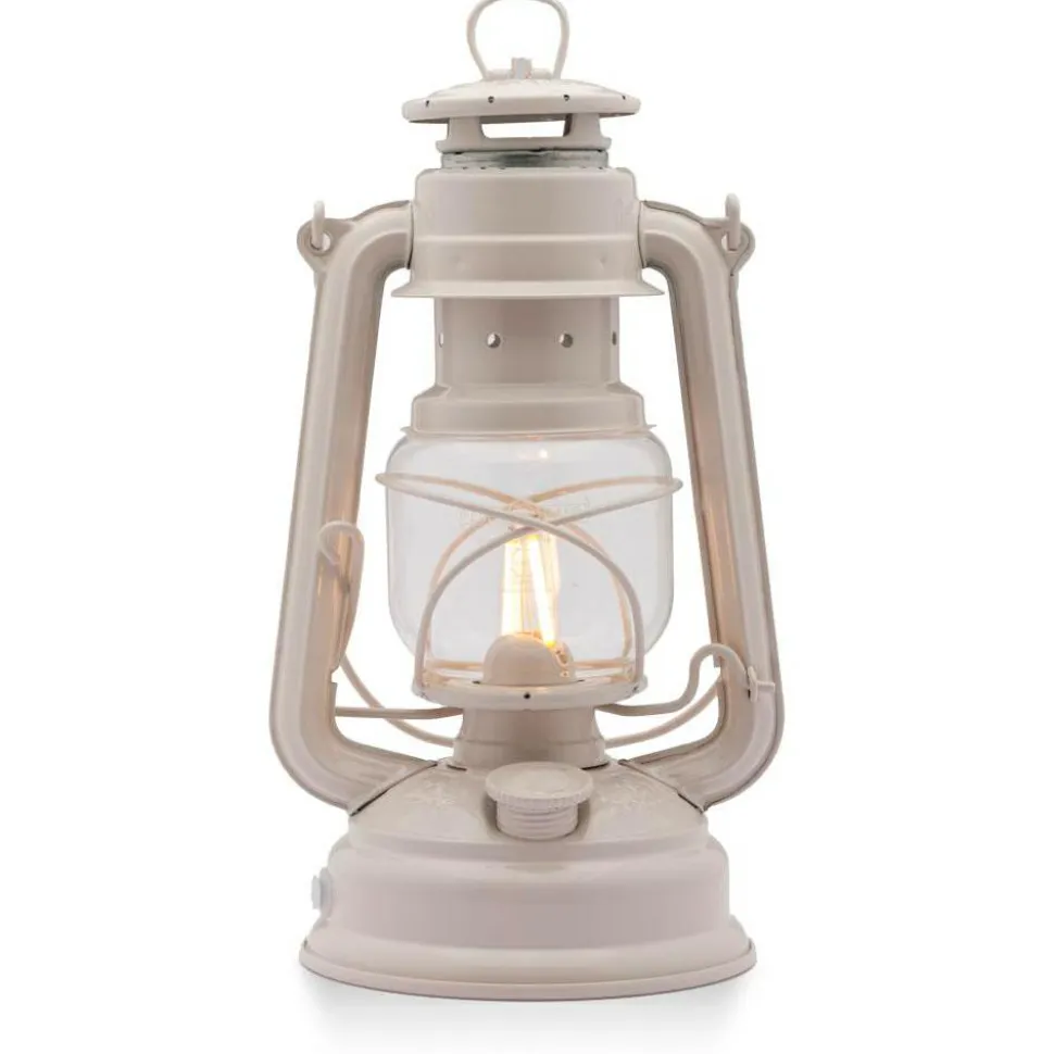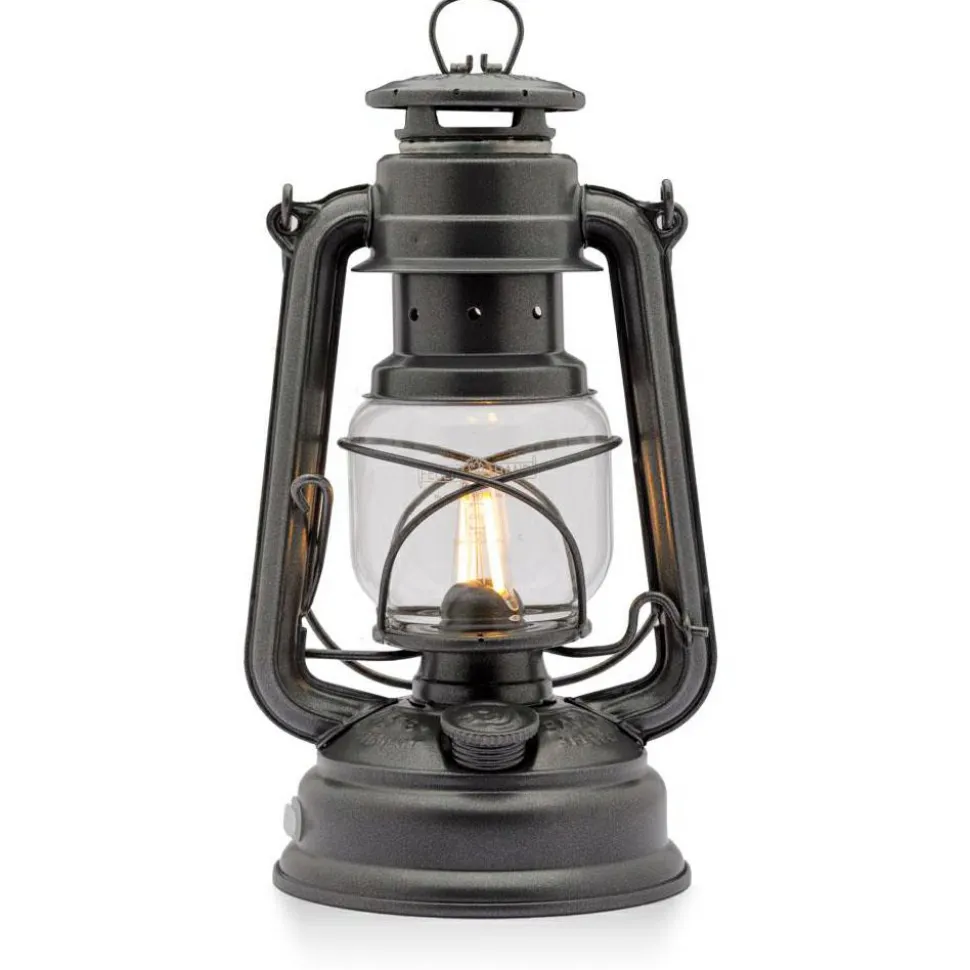 Die LED Laterne Baby Special 276 von Feuerhand wird mit 3 AA-Batterien oder 2 Lithium-Ionen-Akkus (jeweils nicht im Lieferumfang enthalten) betrieben. Zum Aufladen der Akkus befindet sich an einer Seite ein USB-C-Port mit Silikondichtung. Das nötige Ladekabel und Netzteil müssen separat erworben werden. Anhand von grünen und roten Farbanzeigen in den vier Lämpchen erkennst Du den Ladezustand, von voll bis leer.