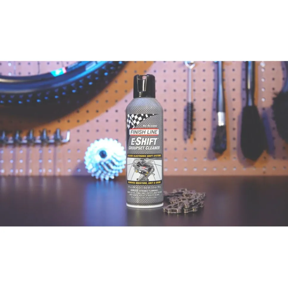 Der Finish Line E-Shift Schaltungsgruppenreiniger ist ein Entfetter der speziell für den Einsatz mit elektronischen Schaltgruppen entwickelt wurde. Die elektronische Verlagerung in den Schaltgruppen ist die nächste Evolution im Fahrradantrieb und stellt für die Instandhaltung einzigartige Herausforderungen dar. Durch empfindliche Bauteile, Elektronik und Kabel ist die sichere Reinigung und Entfettung von Bauteilen wichtiger denn je.