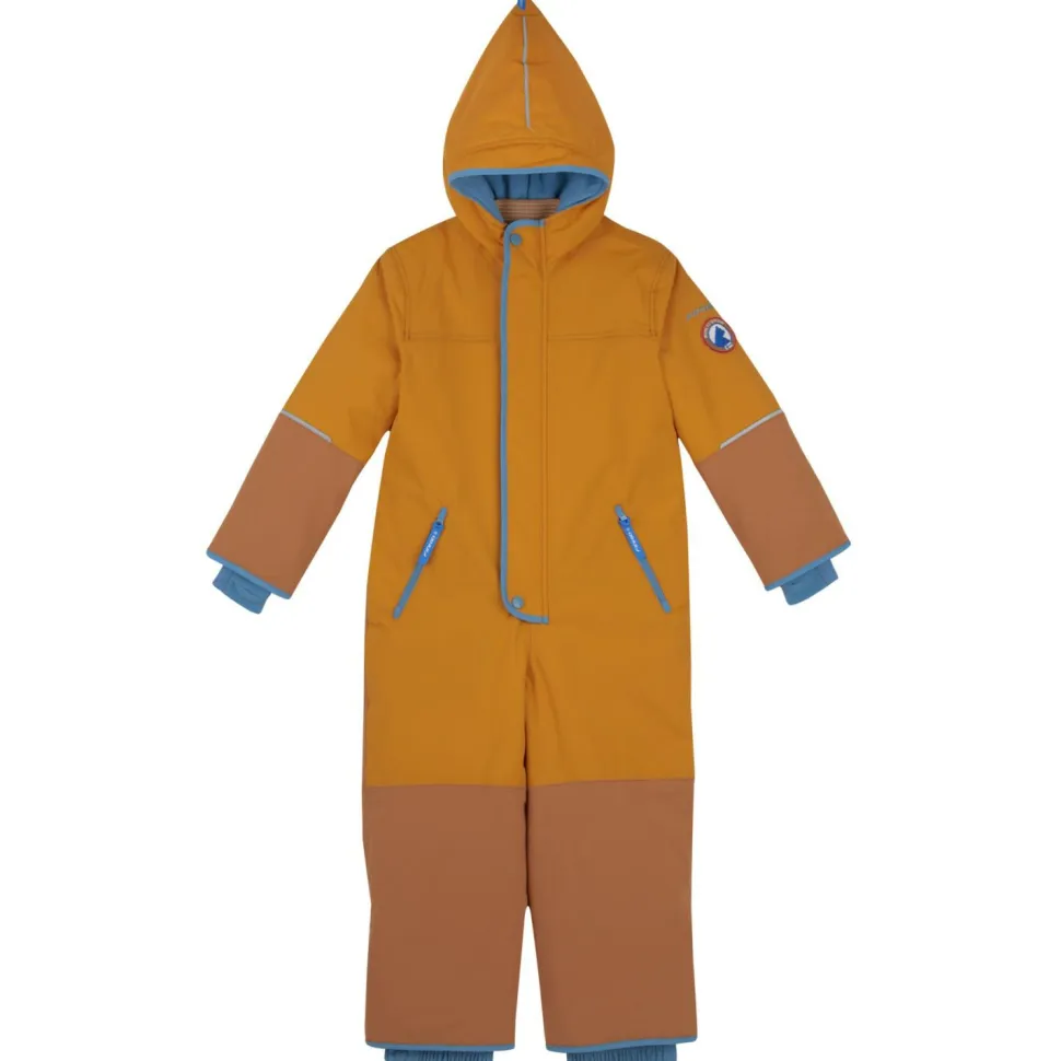 Dick eingepackt und gut geschützt vor Wind und Wetter ist man mit dem Kid’s Husky Haalari von Finkid. Das wasser- und schmutzabweisende Material sowie versiegelte Nähte halten Nässe von Außen ab. Zudem wird vom Körper entstehenden Feuchtigkeit, dank der atmungsaktiven Eigenschaft, schnell abtransportiert. Eine isolierende Kunstfaserfüllung wärmt den Körper.