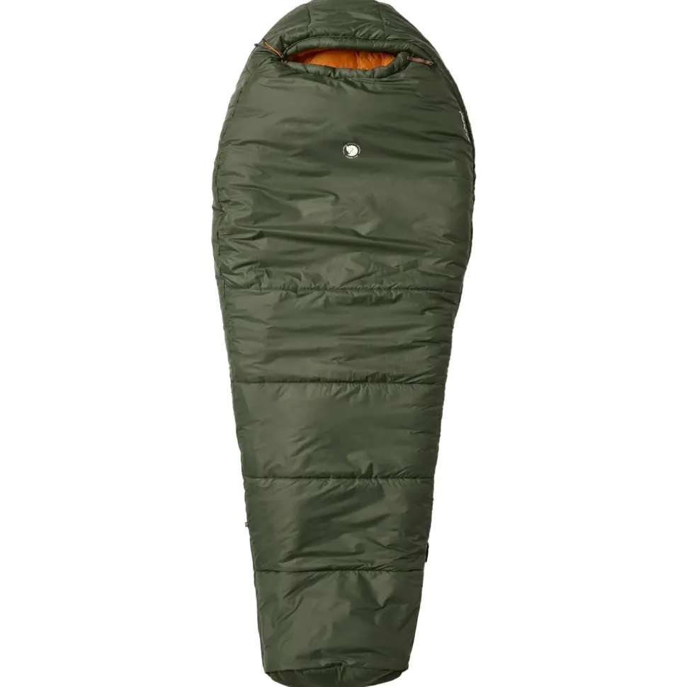 Für angenehme Wärme bei Temperaturen um den Gefrierpunkt stattet Fjällräven den Schlafsack mit einer Füllung aus PrimaLoft aus. Die wattierte Kunstfaser wird komplett aus recyceltem Polyester gewonnen und ist dadurch umweltfreundlich. Innenfutter und Außenmaterial aus recyceltem Polyamid ergänzen den Kunstfaserschlafsack. Der Schlafsack verfügt über eine großzügig geschnittene Fußbox, einen seitlichen 2-Wege-Reißverschluss und eine einstellbare Kapuze. Außerdem gehören eine praktische Innentasche, Aufhängeschlaufen zum Lüften und Trocknen sowie ein passender Packsack zur funktionellen Ausstattung. Der extra lange Schlafsack wiegt 1935 g und ist mit 1430 g PrimaLoft befüllt.