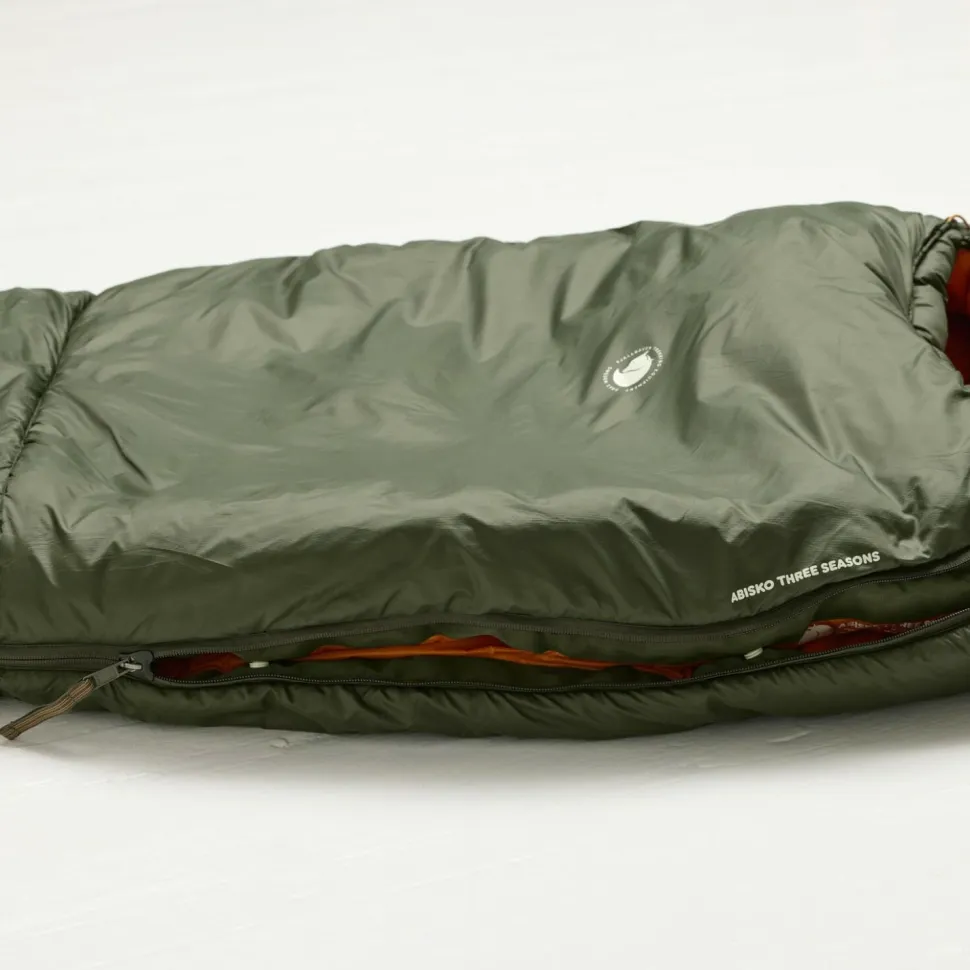 Der lange seitliche Reißverschluss macht das Ein- und Aussteigen schön bequem und ist ebenfalls mit einer Isolierleiste und zusätzlichen Druckknöpfe vor dem Verlust von Wärme geschützt. Zum Verstauen im Rucksack lässt sich der Schlafsack kompakt komprimieren. Für die Lagerung zu Hause kannst Du den Abisko Three Seasons mit Aufhängeschlaufen aufhängen oder im Packsack verstauen.