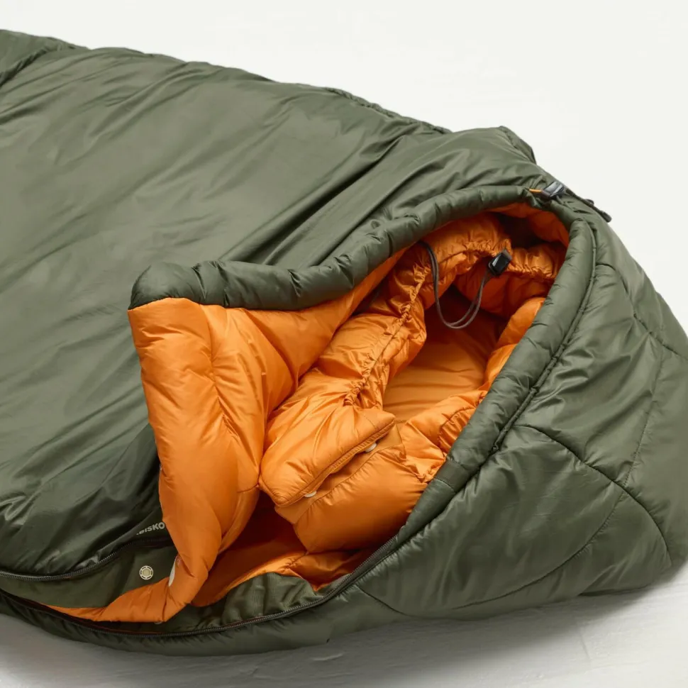 Ein vielseitiger Begleiter für Outdoor-Abenteuer- der Abisko Three Seasons von Fjällräven. Der durchdachte Schlafsack bietet komfortable Wärme für Temperaturen vom Frühjahr bis zum Herbst. Dafür sorgt die PrimaLoft-Isolierung aus recyceltem Polyester, die Körperwärme zuverlässig im Schlafsack hält. Gleichzeitig garantiert sie einen Feuchtigkeitsaustausch, wodurch du in etwas wärmeren Nächten nicht so schnell ins Schwitzen gerätst. Damit Du auch über den empfindlichen Kopfbereich keine Wärme verlierst, kommt der Schlafsack mit einer Kapuze mit Wärmekragen und einem Gummizug.