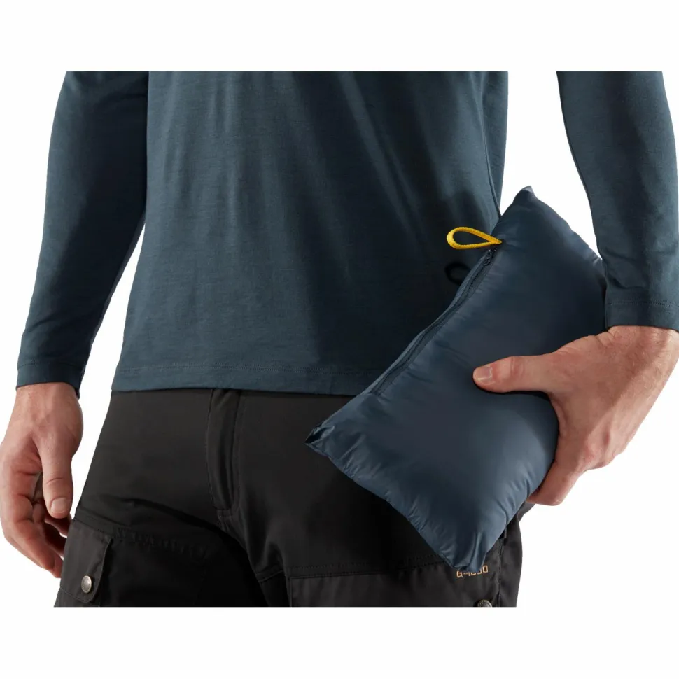 Die Expedition Lätt Hoodie von Fjällräven ist eine warme Kunstfaserjacke die sich bei Nichtgebrauch in einer ihrer Taschen klein und platzsparend verstauen lässt.