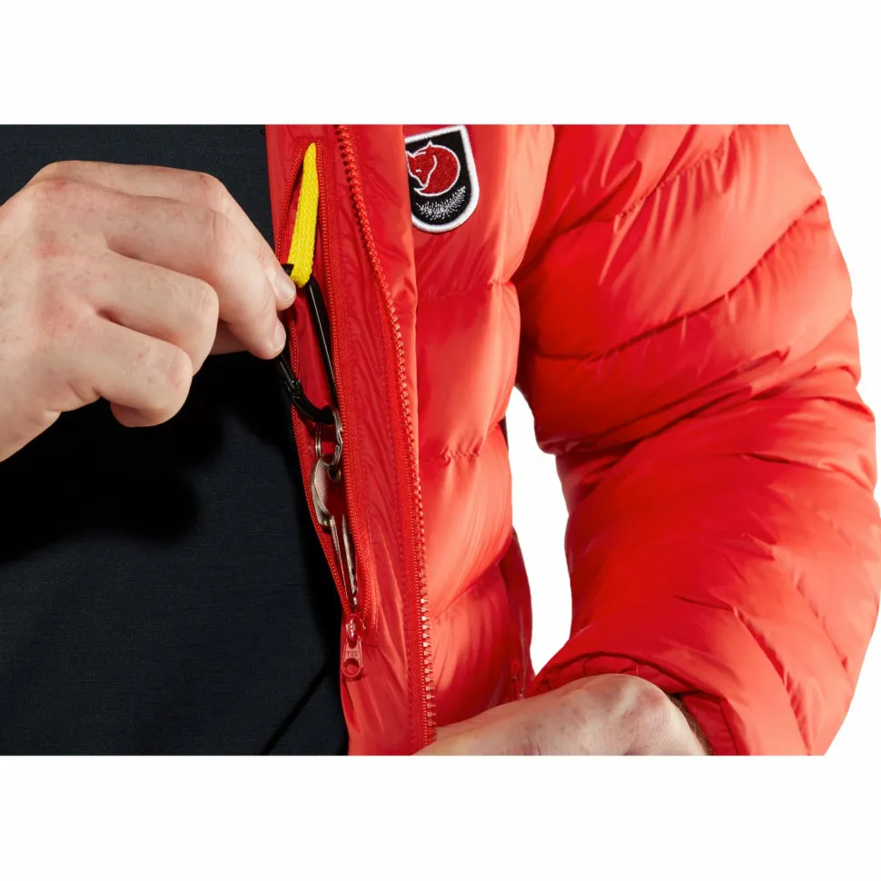 Der Expedition Pack Down Hoodie von Fjällräven ist eine durchdachte Lösung für alle, die im Winter draußen unterwegs sind – sei es beim Wandern, Schneeschuhgehen oder auf Skitour. Die Jacke kombiniert hochwertige Daunenisolierung mit strategisch platzierter Kunstfaserfüllung an den Schultern, wo Druck durch Rucksackträger und Feuchtigkeit besonders wirken. Das sorgt für zuverlässige Wärme, ohne Kompromisse bei der Funktionalität. Besonders praktisch: Die Jacke lässt sich klein zusammenpacken und in der eigenen Tasche verstauen.