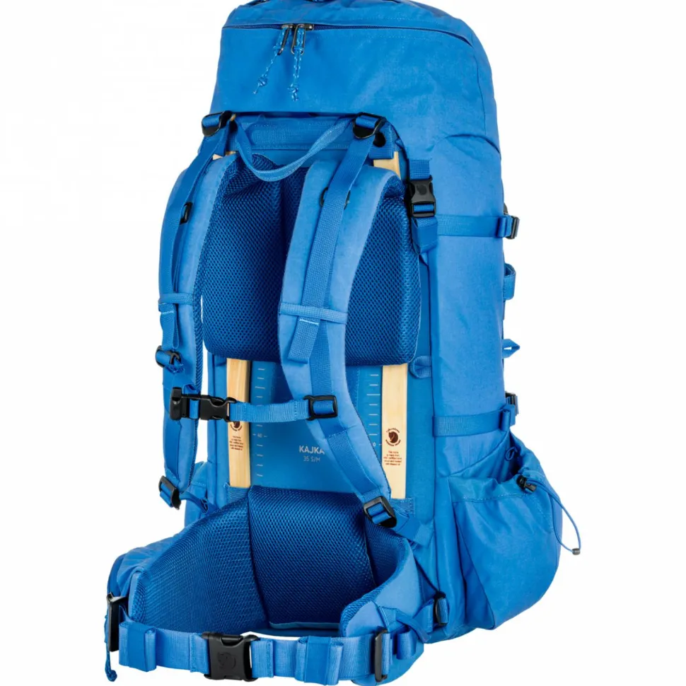 Mit dem Kajka 35 von Fjällräven wird Deine nächste Trekkingtour in den Bergen zu einer komfortablen Angelegenheit. Der Trekkingrucksack ist aus dem strapazierfähigen Vinylon F Gewebe hergestellt und verfügt über einen verstärkten Boden, welcher aus recyceltem Material hergestellt wird. Die Rückenlänge lässt sich vor jeder Tour individuell an Deinen Rücken anpassen. Der Holzrahmen mit fsc-zertifiziertem Birkenholz sorgt selbst bei voller Beladung für eine optimalen Lastenverteilung, damit Deine Muskulatur im Rücken- und Schulterbereich optimal entlastet wird. Das gepolsterte Tragesystem mit atmungsaktivem Mesh-Gewebe sorgt beim Wandern für einen raschen Abtransport von Feuchtigkeit.