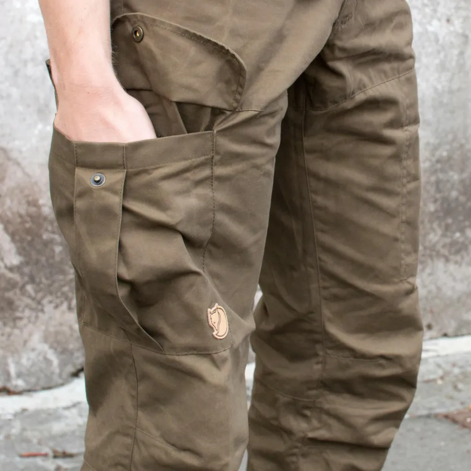 Die Karl Pro Trousers von Fjällräven ist die perfekte Allround-Wanderhose. Sie ist in einem regulären Schnitt gehalten, wodurch sie weder zu eng, noch zu weit sitzt. Zusätzlich verfügt sie über vorgeformte Knie, wodurch für noch mehr Bewegungsfreiheit gesorgt wird. Somit wird die Hose zum perfekten Begleiter auf allen Wander- und Trekkingpfaden dieser Welt. Damit das Wichtigste immer direkt am Mann ist, verfügt die Trekkinghose über eine stattliche Auswahl an Taschen. Eine Beintasche ist mit einem Reißverschluss sowie einer zusätzlichen Innentasche versehen. Dazu sorgen zwei Einschubtaschen, eine Gesäßtasche mit geknöpfter Klappe und eine Werkzeugtasche für Messer oder das Multitool für weiteren Stauraum. Somit wird gewährleistet, dass wirklich alle wichtigen Utensilien griffbereit verstaut werden können und nicht auf jeder kleinen Tour der Griff in den sperrigen Rucksack nötig wird! Einfach ieal für alle Outdoor-Enthusiasten: Die Fjällraven Karl Pro Trousers.