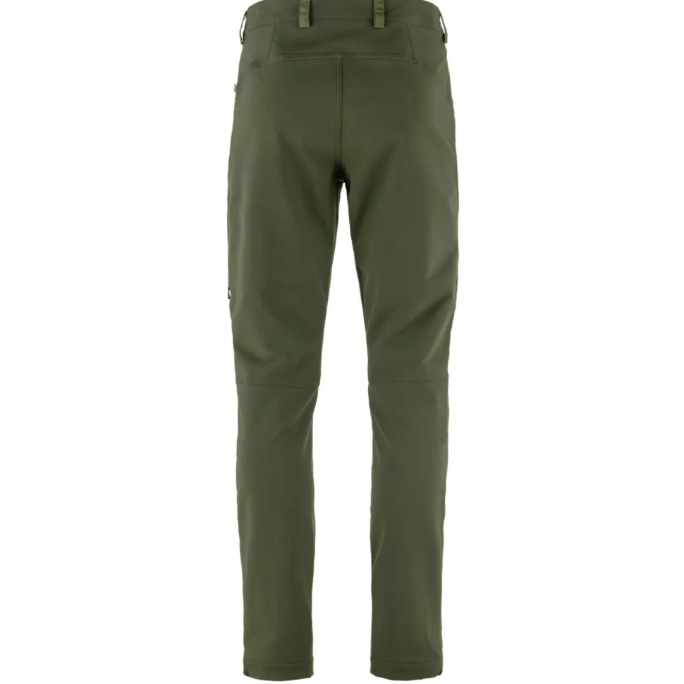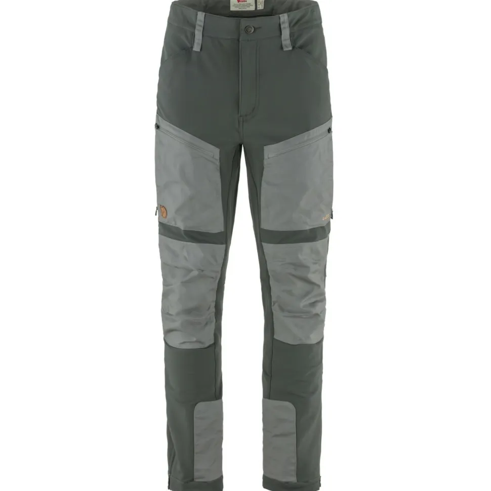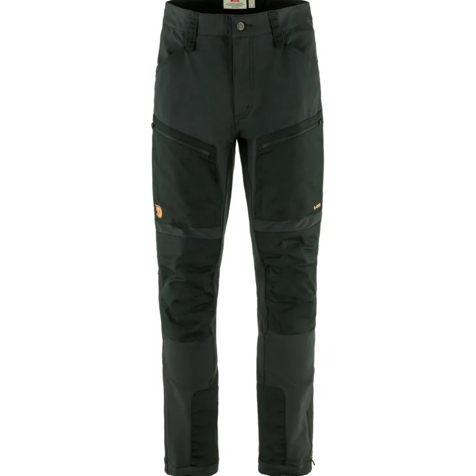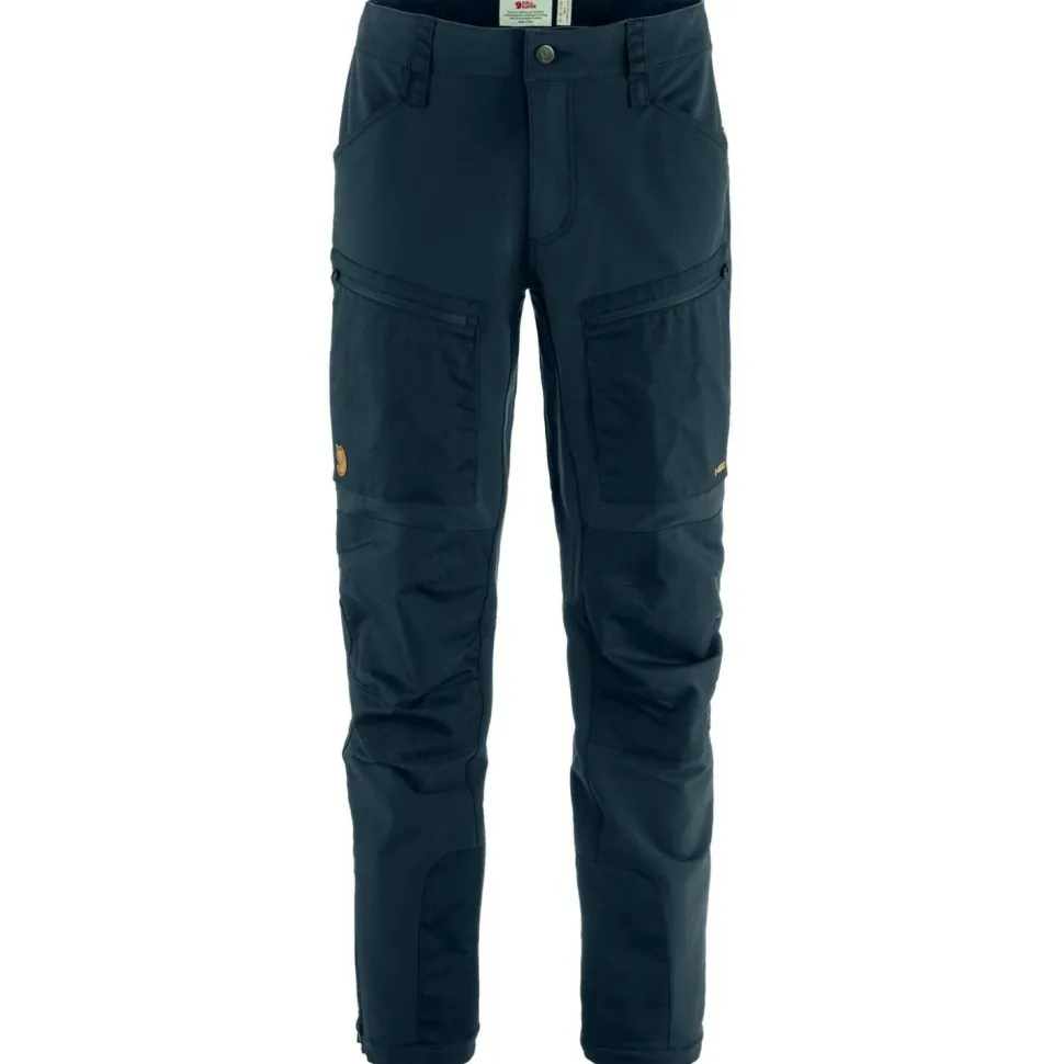 Die Hose besteht aus wunderbar weichem Softshell-Material mit hohem Stretchanteil und ist mit einer wasserabweisenden DWR-Imprägnierung versehen. Dadurch bietet sie einen hohen Tragekomfort und guten Schutz vor Nässe und Nieselregen. Der Schnitt ist weit genug, um an sehr kalten Tagen das Tragen einer zusätzlichen langen Unterhose zu ermöglichen. Besonders beanspruchte Stellen sind mit dem für Fjällräven typischen G-1000 Eco verstärkt. Dieses Material aus Bio-Baumwolle und recyceltem Polyester ist extrem strapazierfähig und macht die Hose noch robuster.