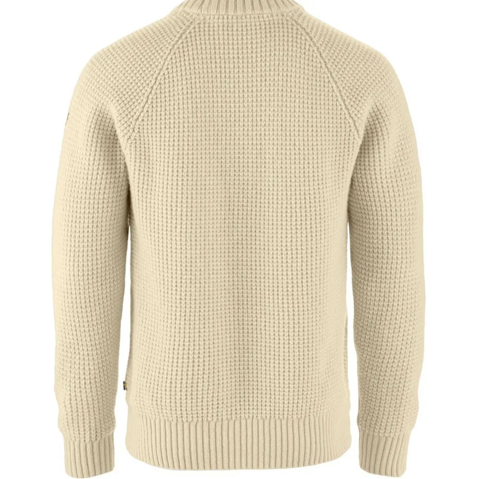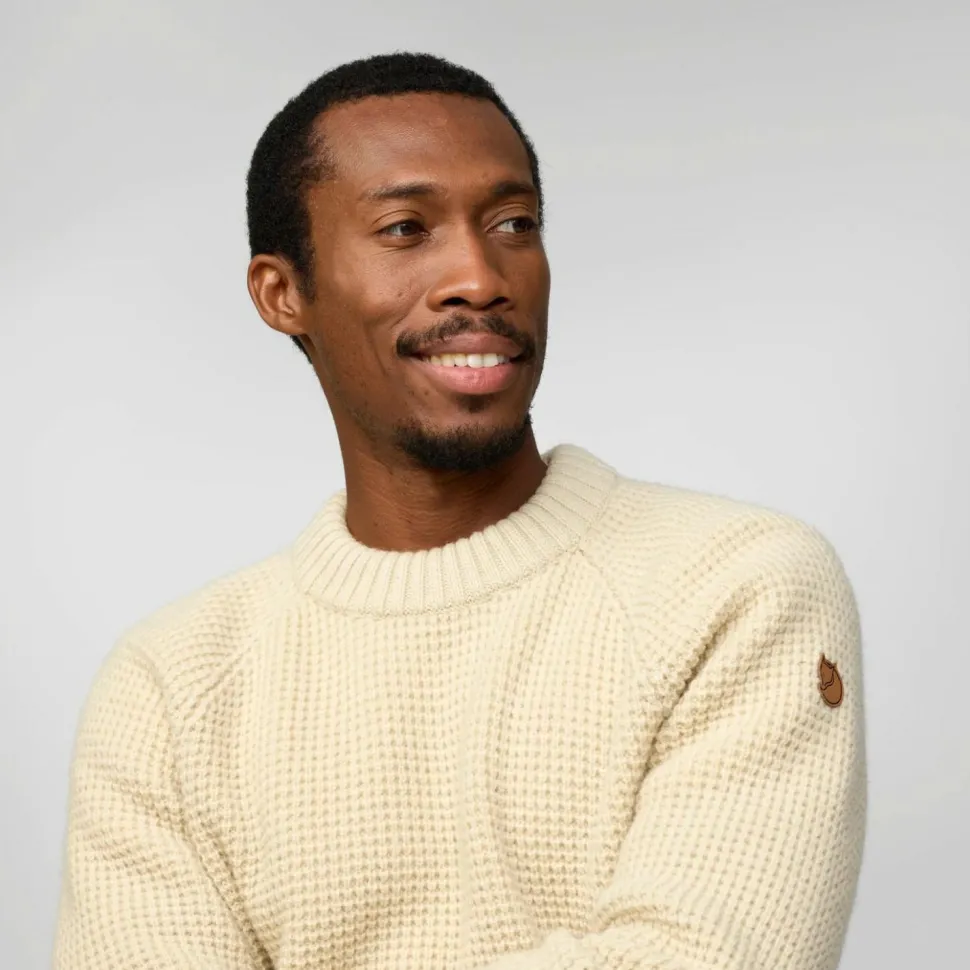 Der dicke Övik Waffle Knit Wollpullover von Fjällräven kann Dich auch an den kältesten Wintertagen wärmen. Du kannst ihn im Haus und im Büro tragen, er eignet sich aber auch als wärmende Außenschicht in den Übergangsjahreszeit. Er kann Dich beispielsweise auch bei der Gartenarbeit, beim Fischen oder beim Spaziergang mit dem Hund begleiten. Das Material aus Wolle ist von Natur aus leicht wasserabweisend und kann einem kurzen Regenschauer oder feuchtem Morgennebel gut standhalten. Außerdem ist Wolle dafür bekannt, auch in feuchtem Zustand eine gute Wärmeleistung zu haben.