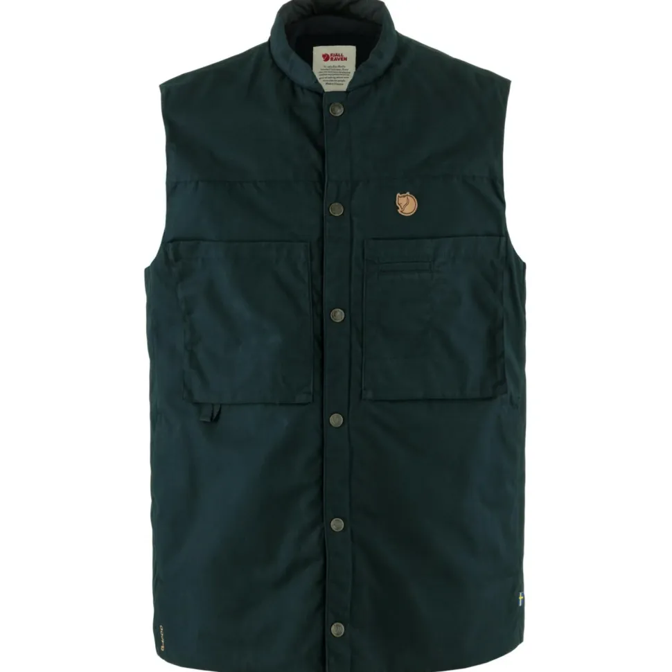 Die Singi Padded Vest von Fjällräven ist eine warme Outdoor-Weste für Herren, die sich ideal zum Trekking und Wandern eignet. Sie besteht aus dem strapazierfähigen Obermaterial G-1000 Silent Eco mit einem hohen Anteil an Bio-Baumwolle und hat eine hochwertige Füllung aus recyceltem Polyester. Dadurch zeichnet sich die Weste durch eine angenehm weiche Haptik aus und überzeugt zugleich durch eine gute Wärmeisolierung.