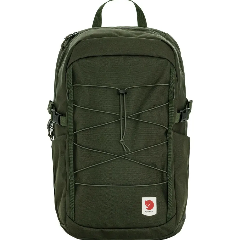 Der wetterfeste Skule 24 Daypack ist mit breiten und komfortablen Schulterträgern ausgestattet. Außerdem ergänzen ein verstellbarer Brustgurt und ein Tragegriff an der Oberseite das Tragesystem. Der Rucksack verfügt außerdem über zwei seitliche Fächer für Trinkflaschen und eine frontale Gummizughalterung.