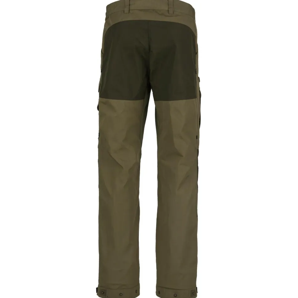 Die Hose besteht aus robustem Kunstfaser-Material mit hohem Elasthan-Anteil und ist an besonders beanspruchten Stellen mit dem speziellen G-1000 Eco verstärkt. Dieses Material aus Bio-Baumwolle und recyceltem Polyester ist extrem strapazierfähig und erhöht die Abriebfestigkeit der Hose deutlich. An den Knien befinden sich Öffnungen zum Einlegen von Polstern. Diese sind allerdings nicht im Lieferumfang enthalten.