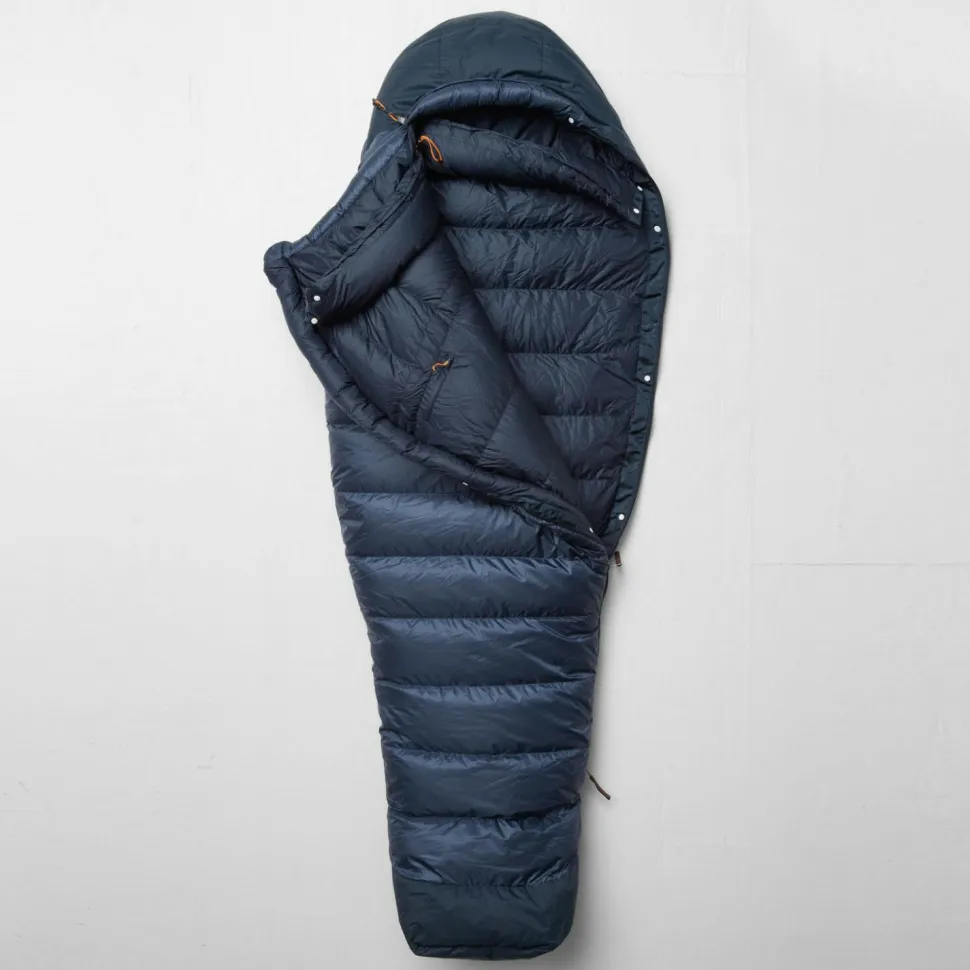 Der Reißverschluss ist mit einem besonders großen Schiffchen versehen, das Du auch gut mit Handschuhen bedienen kannst. Möchtest Du bei höheren Temperaturen den Women’s Keb Three Seasons Daunenschlafsack zu, aber eine gute Belüftung haben, kannst Du ihn seitlich auch mit der durchgehenden Druckknopfleiste statt des Reißverschlusses verschließen.