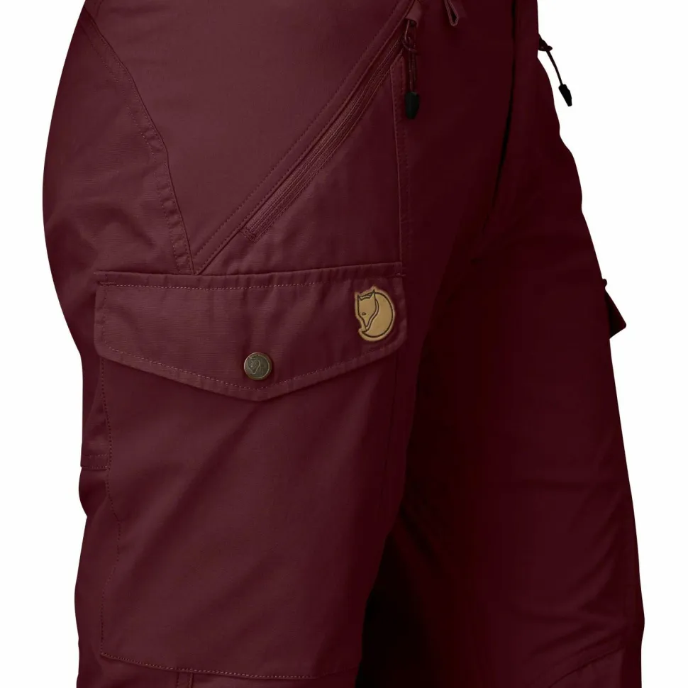 Die Women’s Nikka Trousers Curved von Fjällräven überzeugt mit ihrer praktischen Hybridform. Gefertigt zum Teil aus stretchigem Kunstfasermix, zum Teil aus klassischem G-1000 Original bietet die Hose alles, was man von einer funktionellen Trekkinghose erwartet. Der stark beanspruchte Hüft- und Oberschenkelbereich der Hose ist aus einem besonders elastischen Material gefertigt. So macht das Textil beim Trekking widerstandslos jede Bewegung mit und schränkt dabei garantiert nicht ein! Unterer Bein-, Knie- und Gesäßbereich der Women’s Nikka Trousers Curved von Fjällräven sind mit Einsätzen aus dem robusten G-1000 verstärkt. Das Material ist aufgrund seines dichten Gewebes besonders langlebig. Zudem wirkt es windabweisend, ist aber dennoch atmungsaktiv. Daher findet ein aktiver Feuchtigkeitstransport statt, der vom Körper abgegebenen Schweiß rasch an die Umgebungsluft abführt. Eine wasserabweisende, Fluorkohlenwasserstoff-freie Imprägnierung macht die Hose fit für kurze Schauer. Zudem trocknet das Material schnell, falls es doch mal nass geworden ist. Die Women’s Nikka Trousers Curved von Fjällräven ist in einem ‚hüftfreundlichen? Schnitt angefertigt. Das heißt, weibliche Rundungen sind hier komfortabel verpackt, ohne dass der Stoff an allen Ecken zwickt und drückt. Vorgeformte Knie erhöhen zusätzlich die Bewegungsfreiheit und somit den Tragekomfort der Tekkinghose. Die Women’s Nikka Trousers Curved von Fjällräven hat das Zeug zur Lieblingshose!