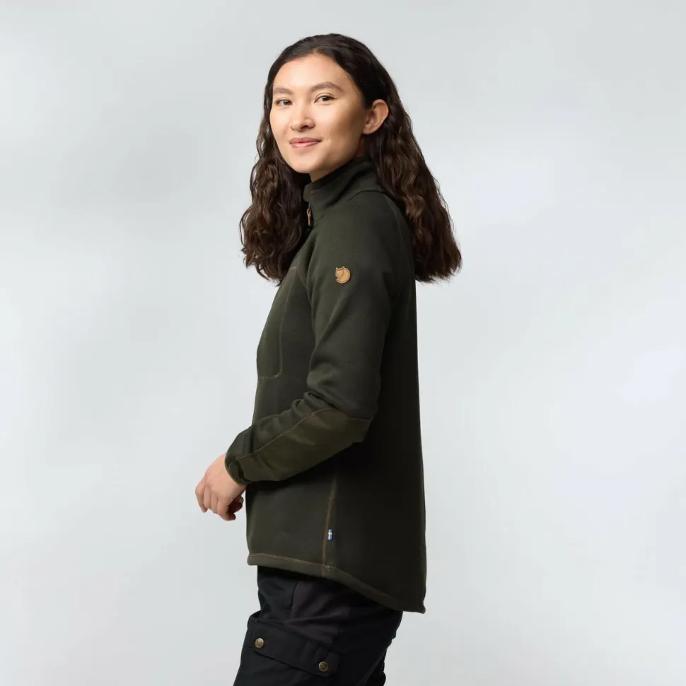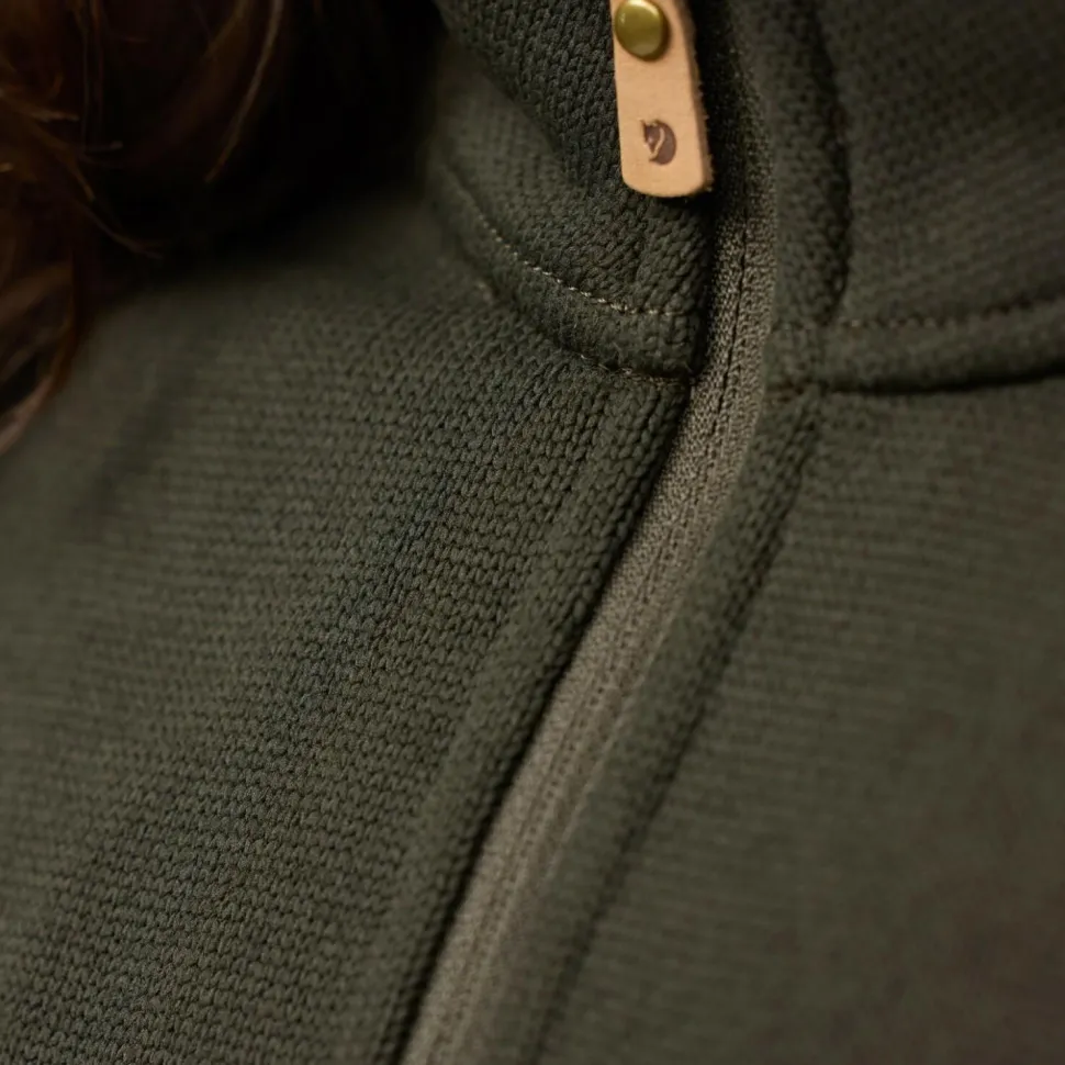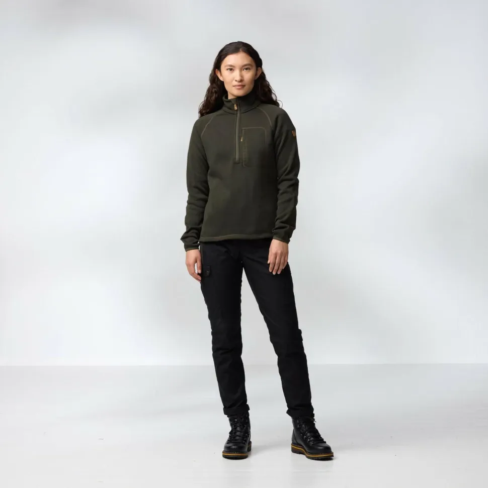 Der Women’s Övik Fleece Half Zip von Fjällräven ist Dein idealer Begleiter für kalte Tage. Teilweise hergestellt aus recyceltem Polyester, bietet dieser Fleecepullover eine angenehme Wärme und ein weiches Tragegefühl dank der gebürsteten Innenseite. Der halblange Reißverschluss ermöglicht Dir eine einfache Belüftung, sodass Du immer optimal ausgestattet bist, egal ob beim Wandern oder im Alltag. Robuste Verstärkungen an den Ellenbogen aus Fjällrävens bewährtem G-1000 machen den Pullover langlebiger.