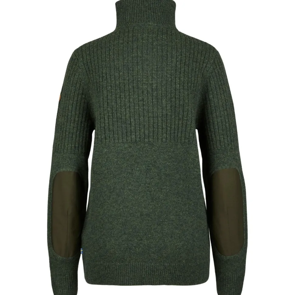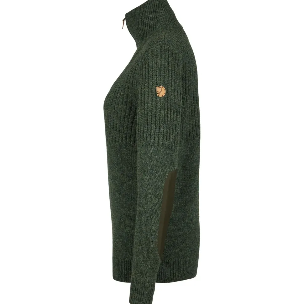 Mit dem Women’s Övik Half Zip Knit von Fjällräven bist Du im Winter und Herbst schön warm und äußerst bequem gekleidet. Der dicke Damenpullover besteht aus 100 Prozent herrlich weicher Bio-Wolle und bietet dank des etwas weiteren Schnitts viel Bewegungskomfort. Das hochwertige Strickgewebe ist zudem sehr strapazierfähig und an den Ellenbogen verstärkt. An diesem Oberteil wirst Du lange Freude haben!