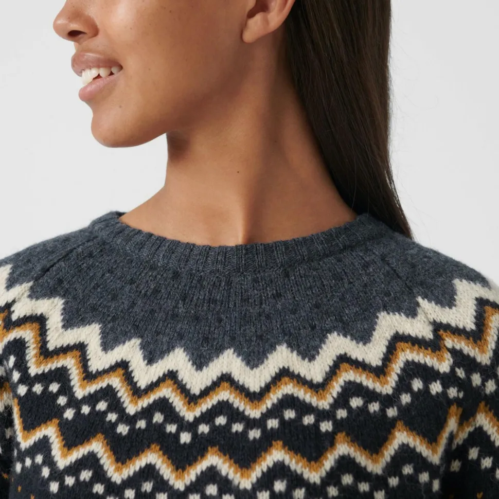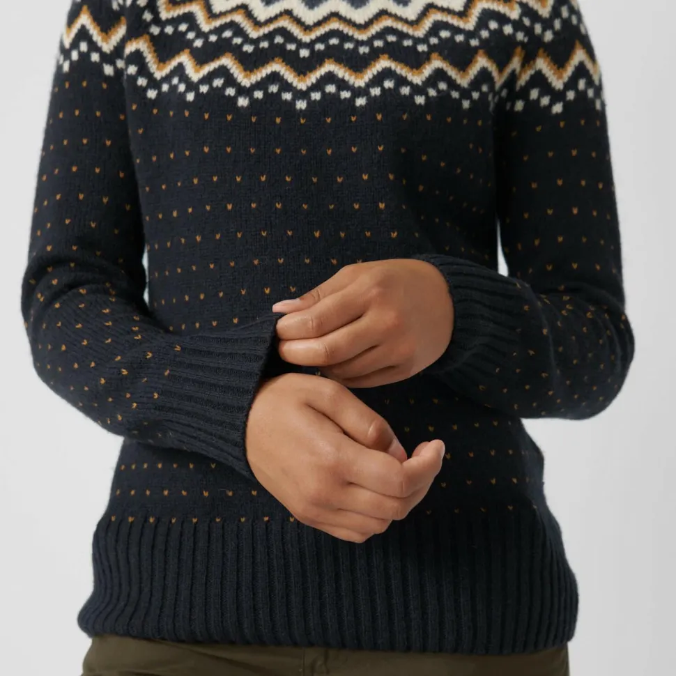 Klassisches Design kombiniert mit weicher Wolle! Der flauschige Women’s Övik Knit Sweater von Fjällräven bringt alles mit, was ein schlichter Pullover für die kalte Jahreszeit so braucht. Die Wolle wärmt auch, wenn sie mal etwas feucht wird, beispielsweise bei der Schneeballschlacht vor der Hütte! Zudem trägt sich der Pullover sehr kuschelig, ideal am Abend vor dem Kamin.In Jaqcuard-Strick mit klassischem Muster bringt der Women’s Övik Knit Sweater die nötige Portion Wärme mit, egal ob man im Alltag unterwegs ist oder das Wochenende auf der Hütte verbringt, der Pullover macht einfach alles mit und sieht dabei echt schick aus!