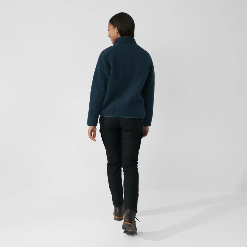 Damit die Women’s Vardag Pile Fleece von Fjällräven auch bei anspruchsvollen Bewegungen perfekt sitzt, ist sie am Saum, sowie an den Ärmeln mit elastischen Einsätzen versehen. Die recycelten Materialien, aus denen der Fleece zu einem großen Teil hergestellt wurde, setzen ein klares Zeichen in Sachen Umweltschutz und Fjällräven zeigt, dass nicht alles neu sein muss, um viel Spaß bei sportlichen Aktivitäten in der Natur haben zu können.